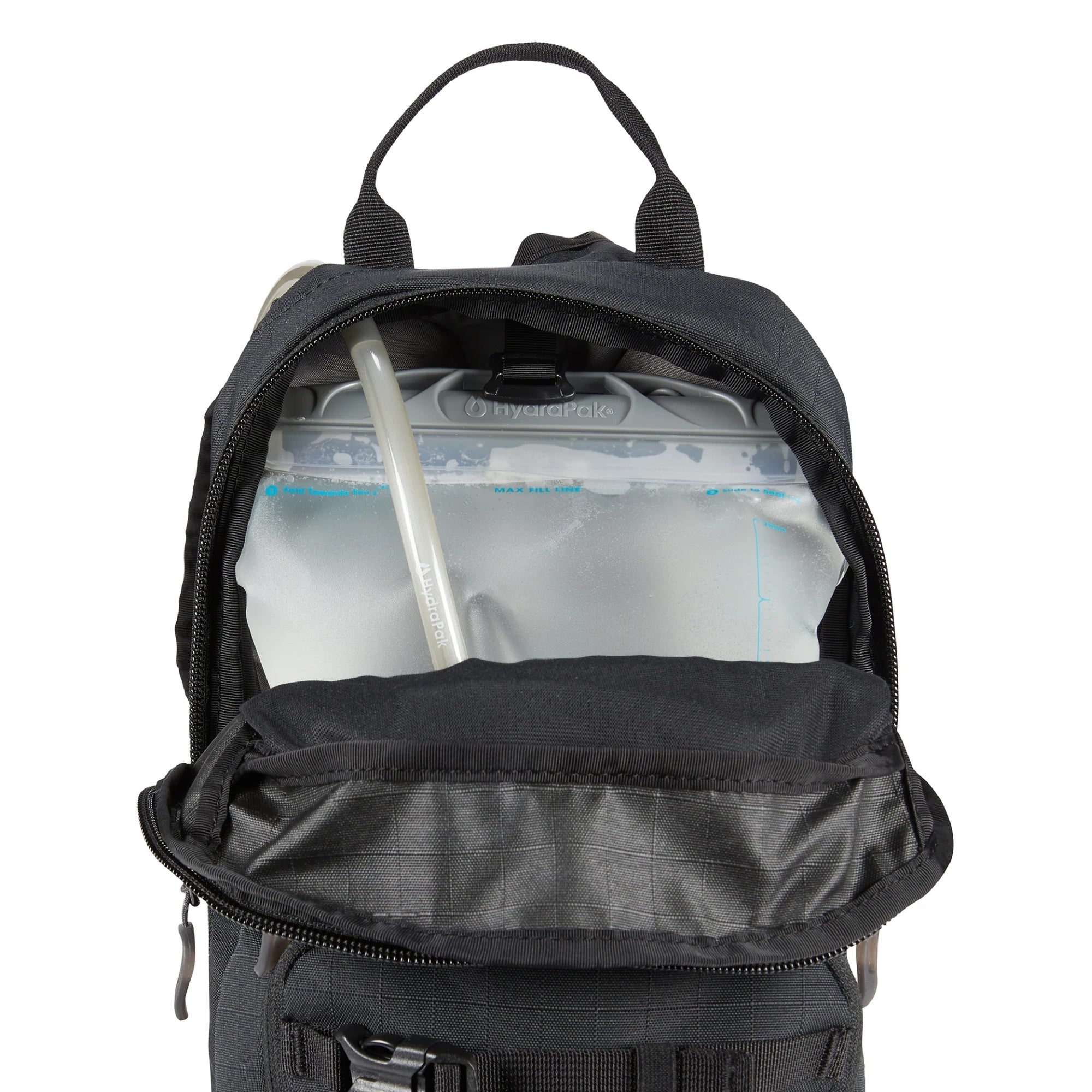 - Trinksystem – integriertes 2-Liter-Hydrapak mit Phaser-Beißventil für unkomplizierte Flüssigkeitsaufnahme unterwegs