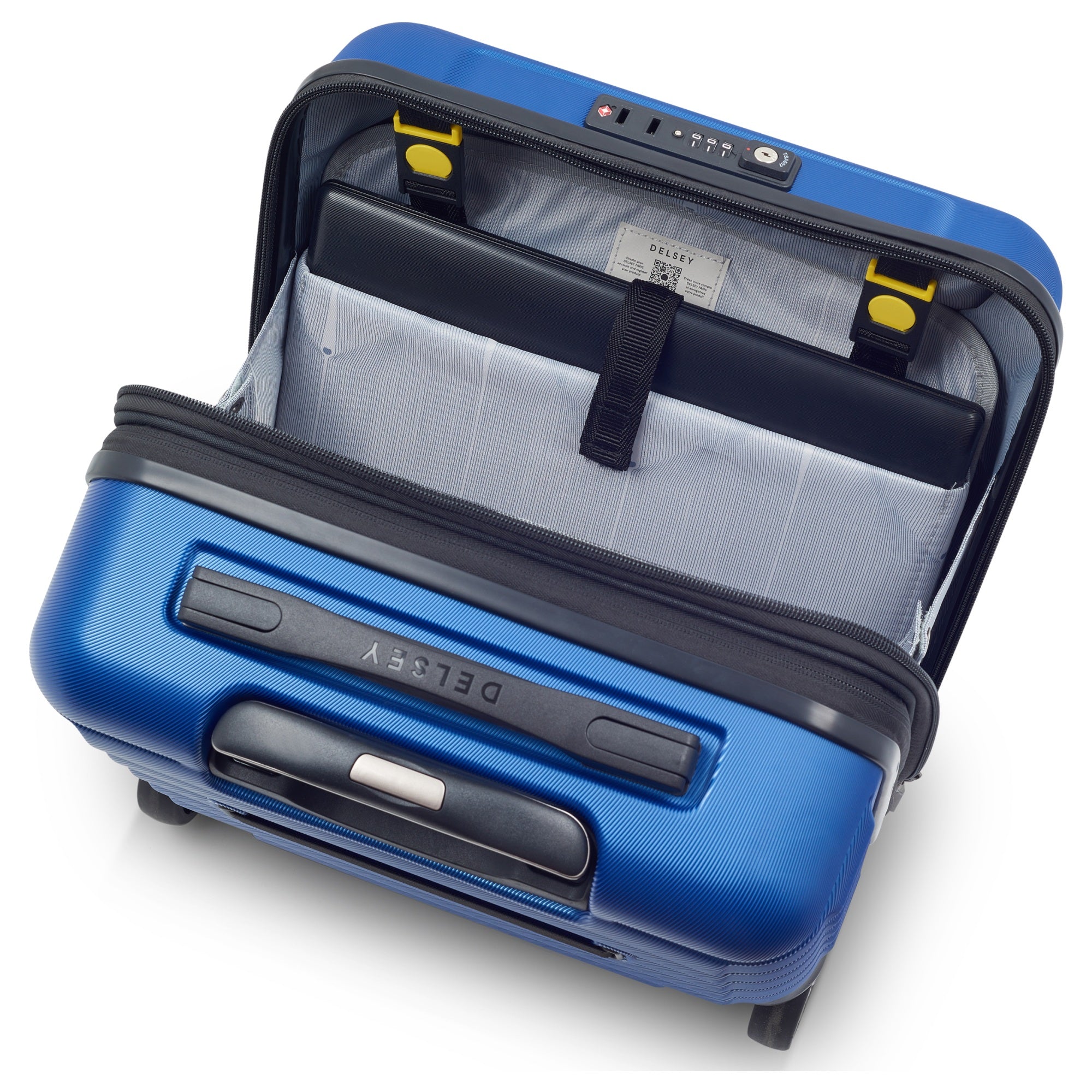 Dieser Businesstrolley von DELSEY PARIS verbindet technische Funktionalität mit praktischem Design und ist ideal für Geschäftsreisende, die Wert auf effizientes Packen und unkomplizierten Transport legen.