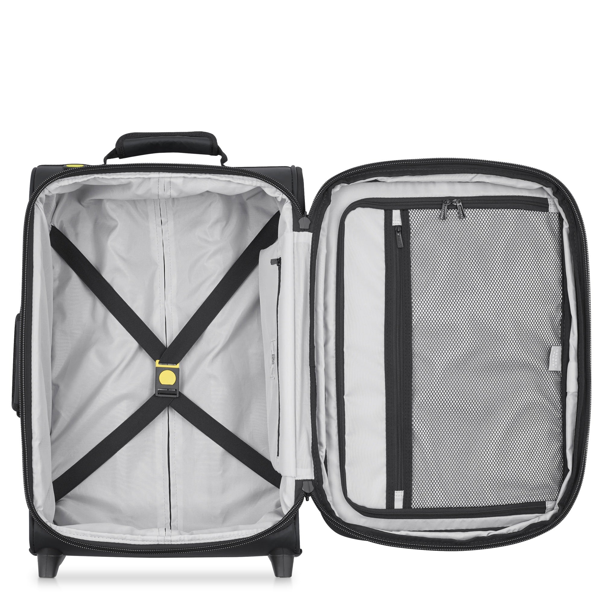 The Delsey Paris Maubert 2.0 is a functionally designed 2-wheel cabin trolley in classic black with a volume of 40 liters and a weight of 2.7 kilograms. It is ideal for short trips and business travel where carry-on luggage is required.