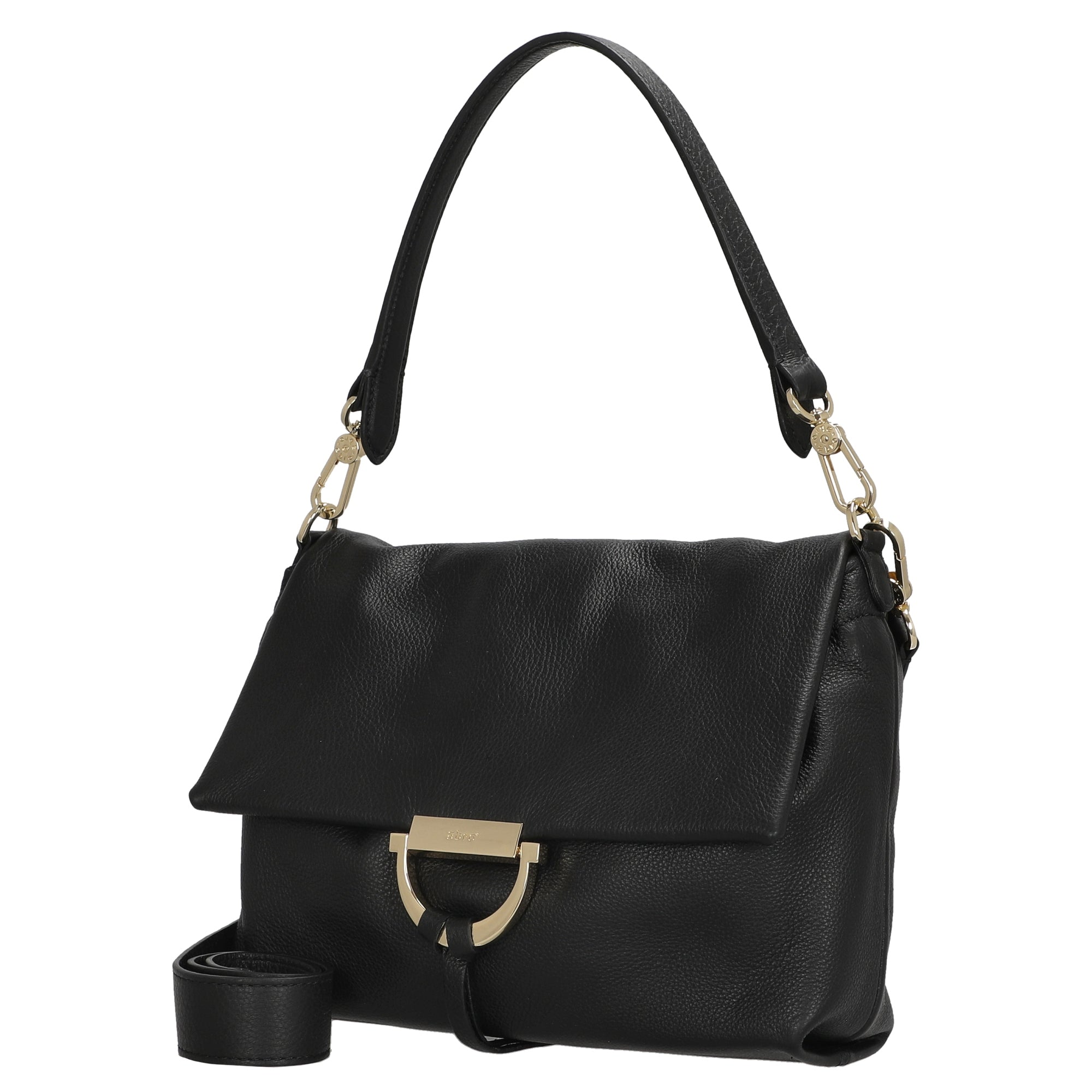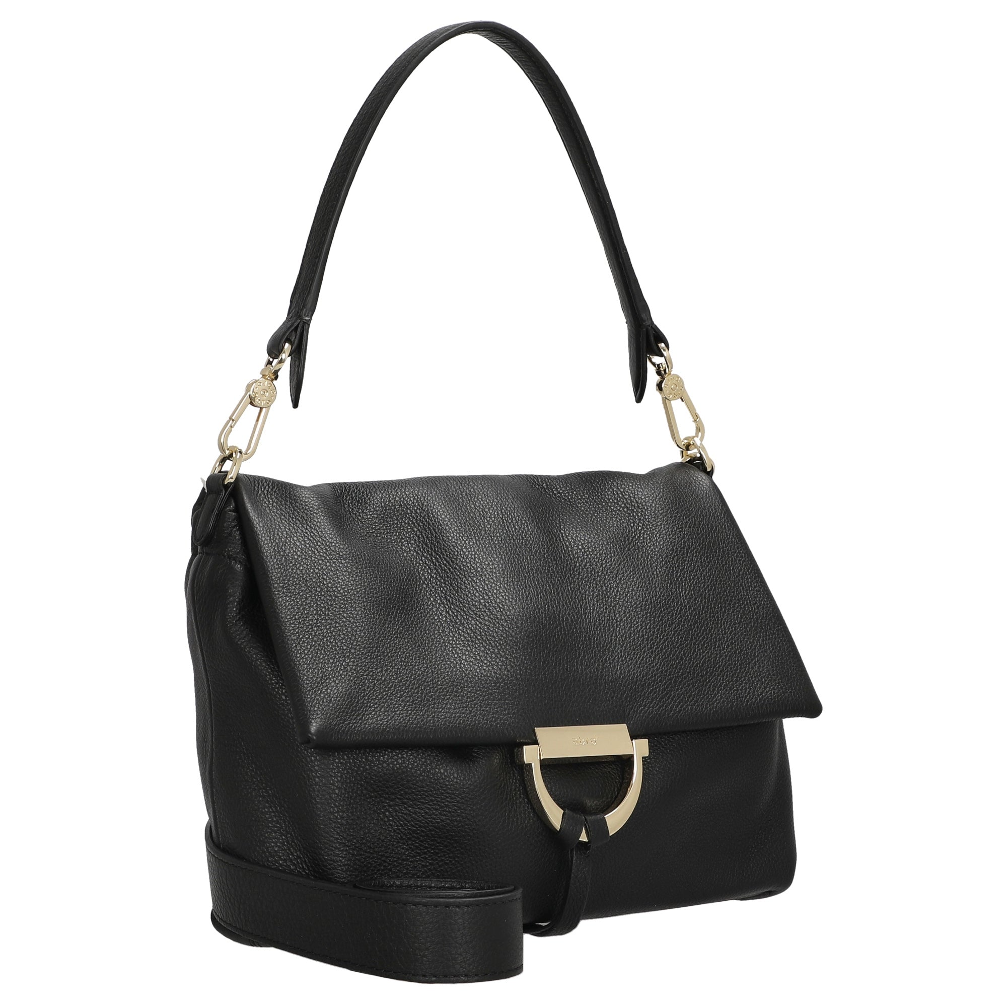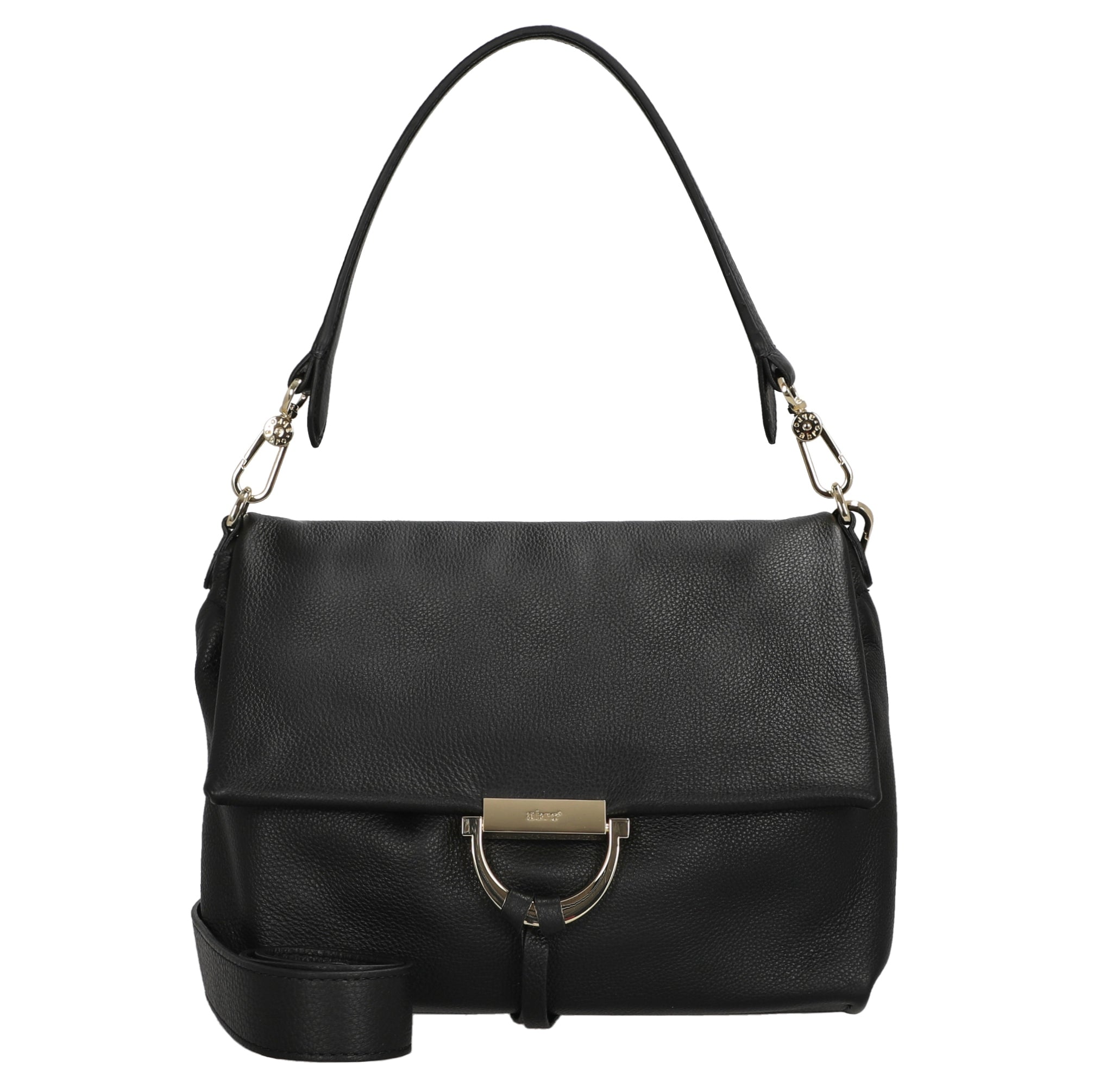 El bolso bandolera abro Temi Medium en elegante negro es un acompañante estiloso para mujeres con sentido de la moda que valoran la alta calidad de fabricación y el diseño atemporal.