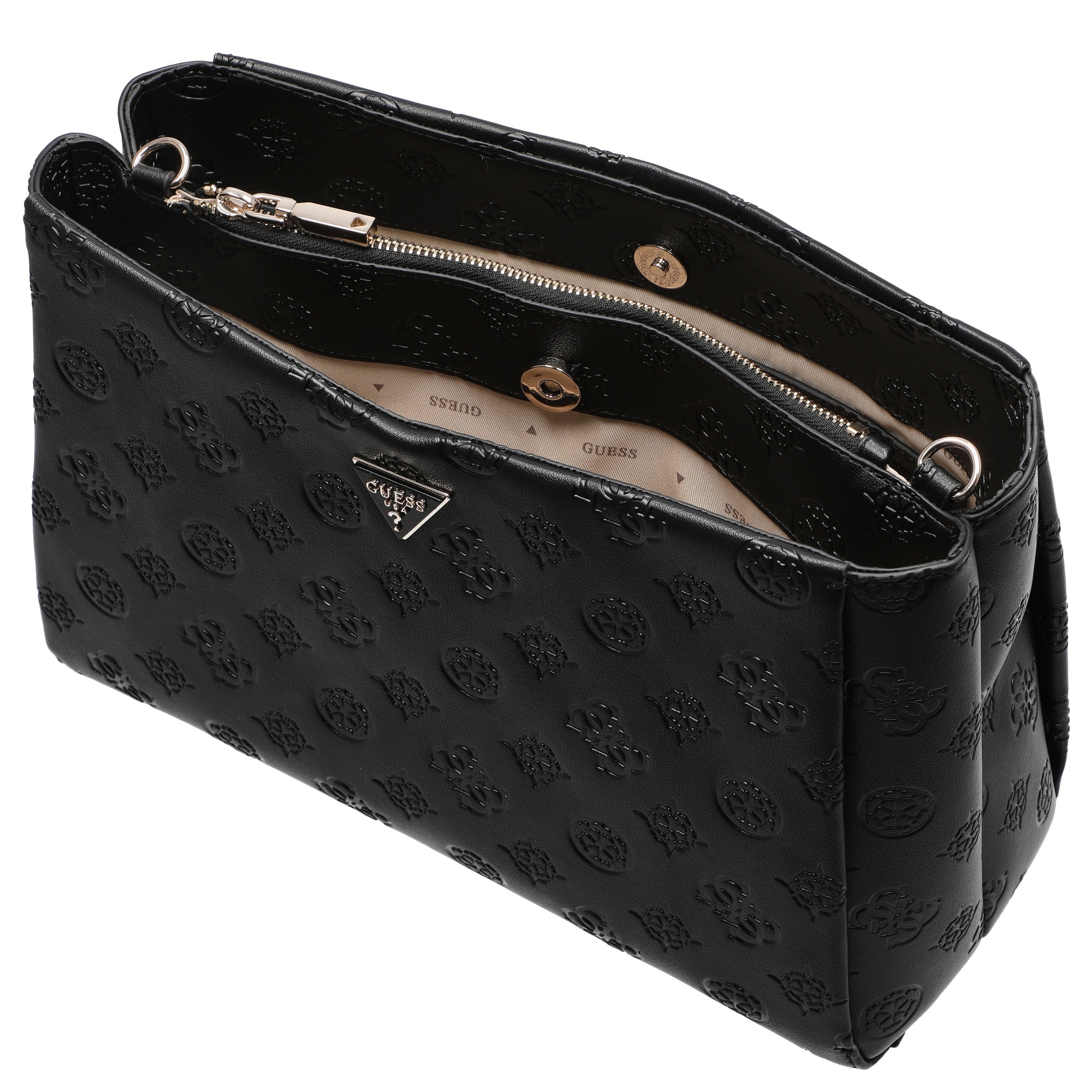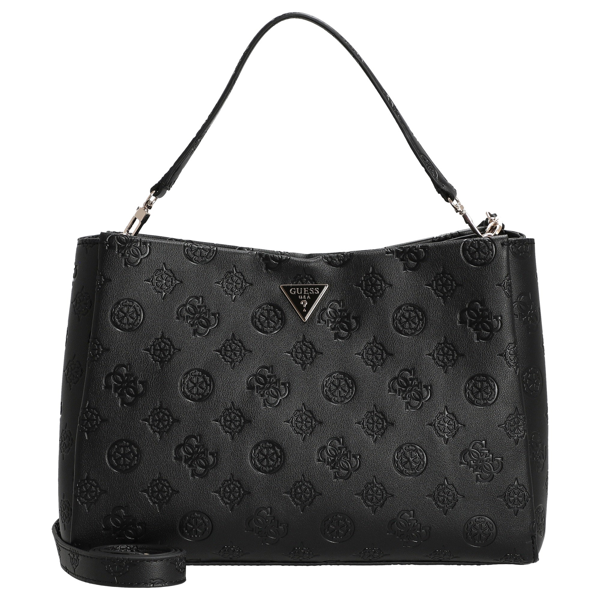 Ya sea en la oficina, paseando por la ciudad o por la noche, el bolso de hombro Guess Tisha Girlfriend en negro es un todoterreno con estilo que complementa perfectamente cualquier conjunto.