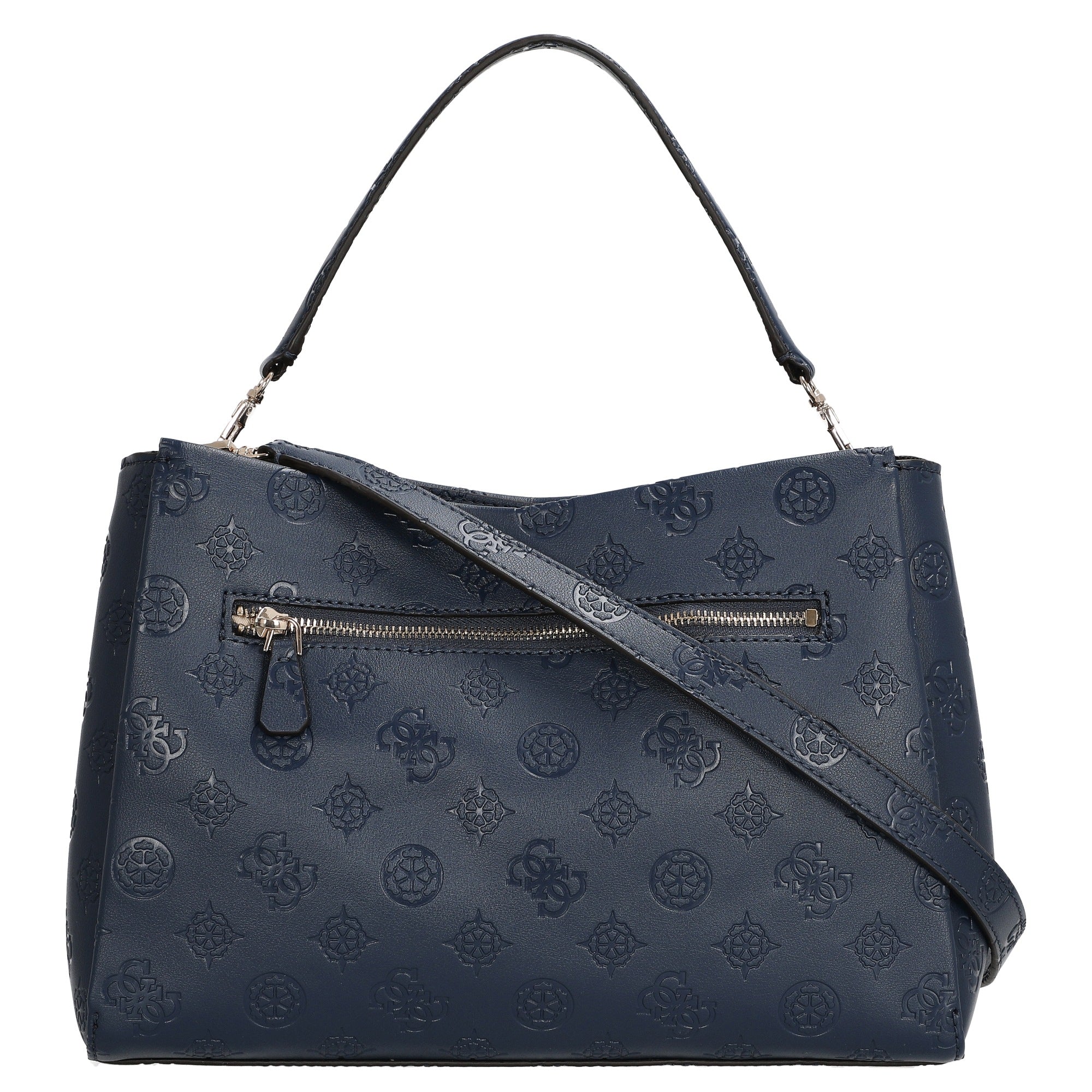 El bolso de hombro Guess Tisha Girlfriend en elegante azul medianoche combina un diseño estiloso con una practicidad adecuada para el día a día. El cuero sintético de alta calidad con patrón de logo en relieve le otorga al bolso una apariencia noble que convence por su moda.