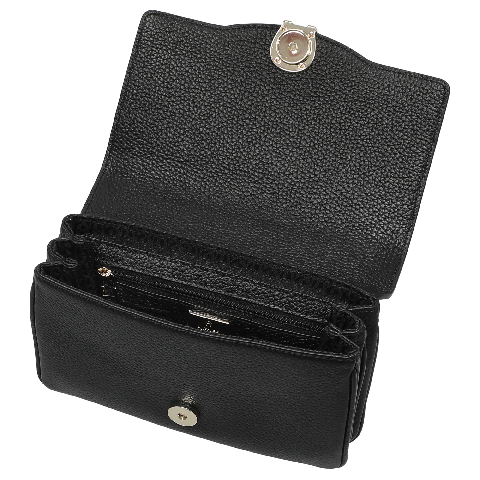 El interior de este práctico bolso de noche está diseñado de manera inteligente para ofrecerle una organización óptima. Con su elegante color negro, el bolso es versátil y un auténtico imprescindible para toda mujer con estilo.