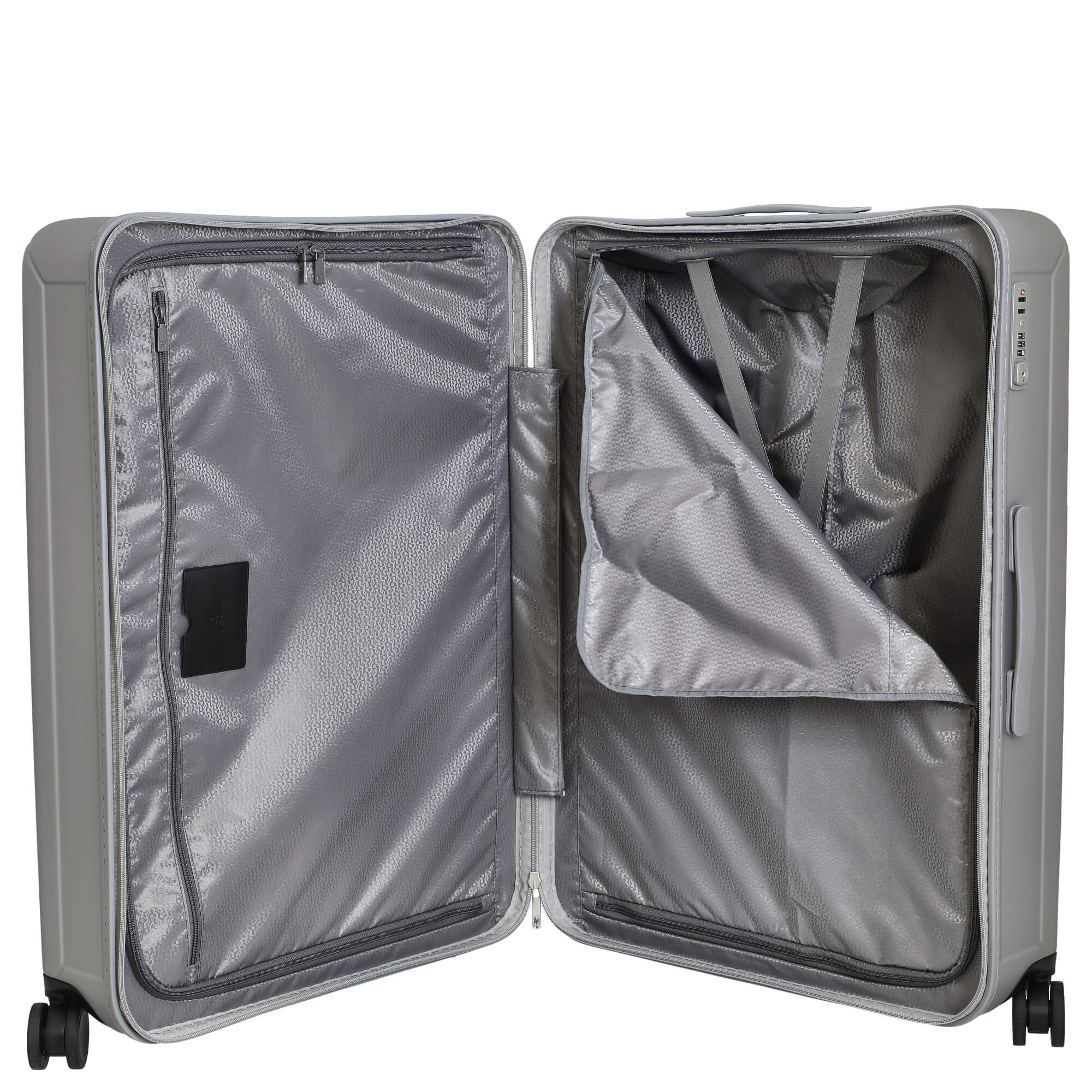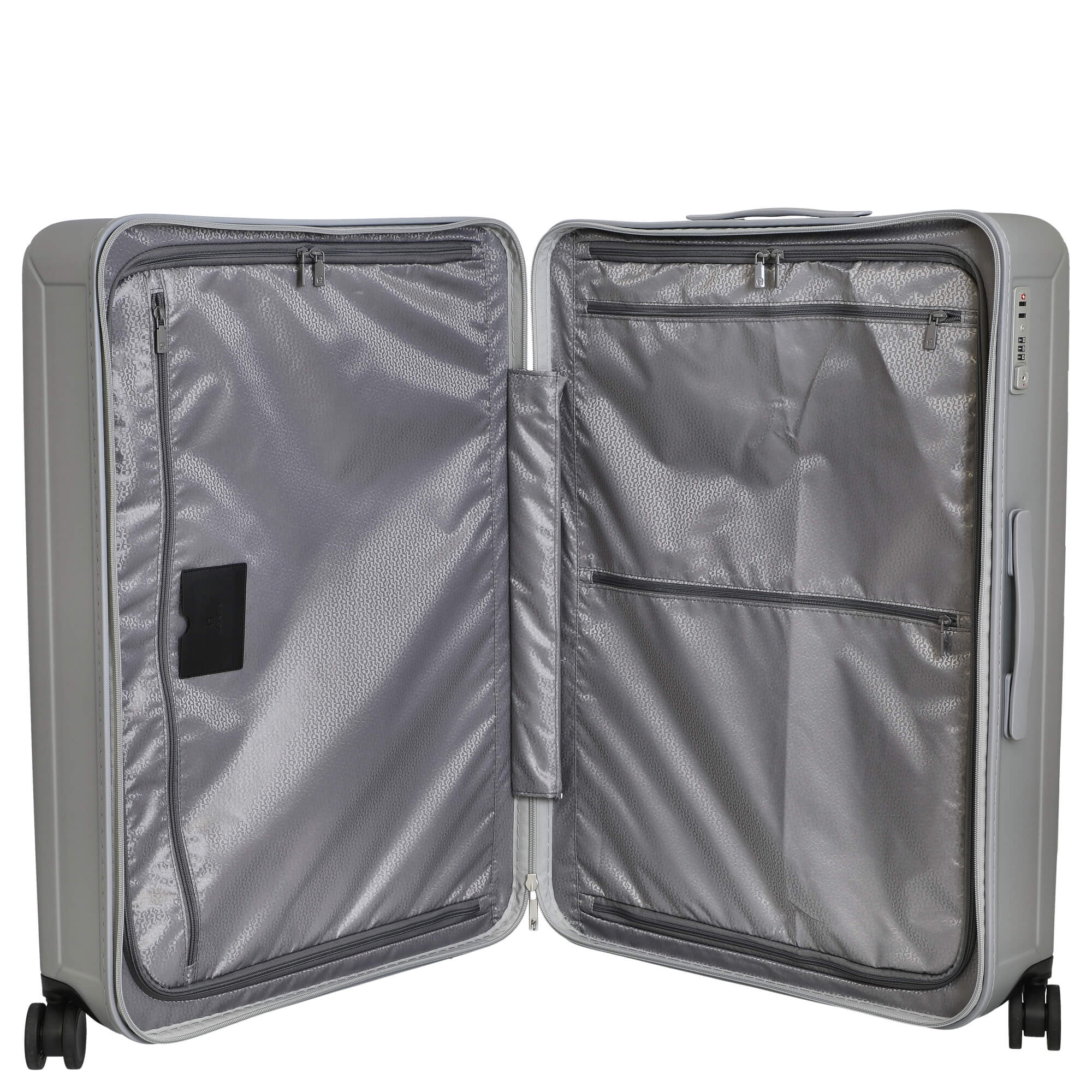 Descubra el trolley de 4 ruedas Aigner Inmotion en un elegante color plateado, que le permite viajar con estilo. Esta maleta rígida combina un diseño moderno con características bien pensadas que mejoran su experiencia de viaje.