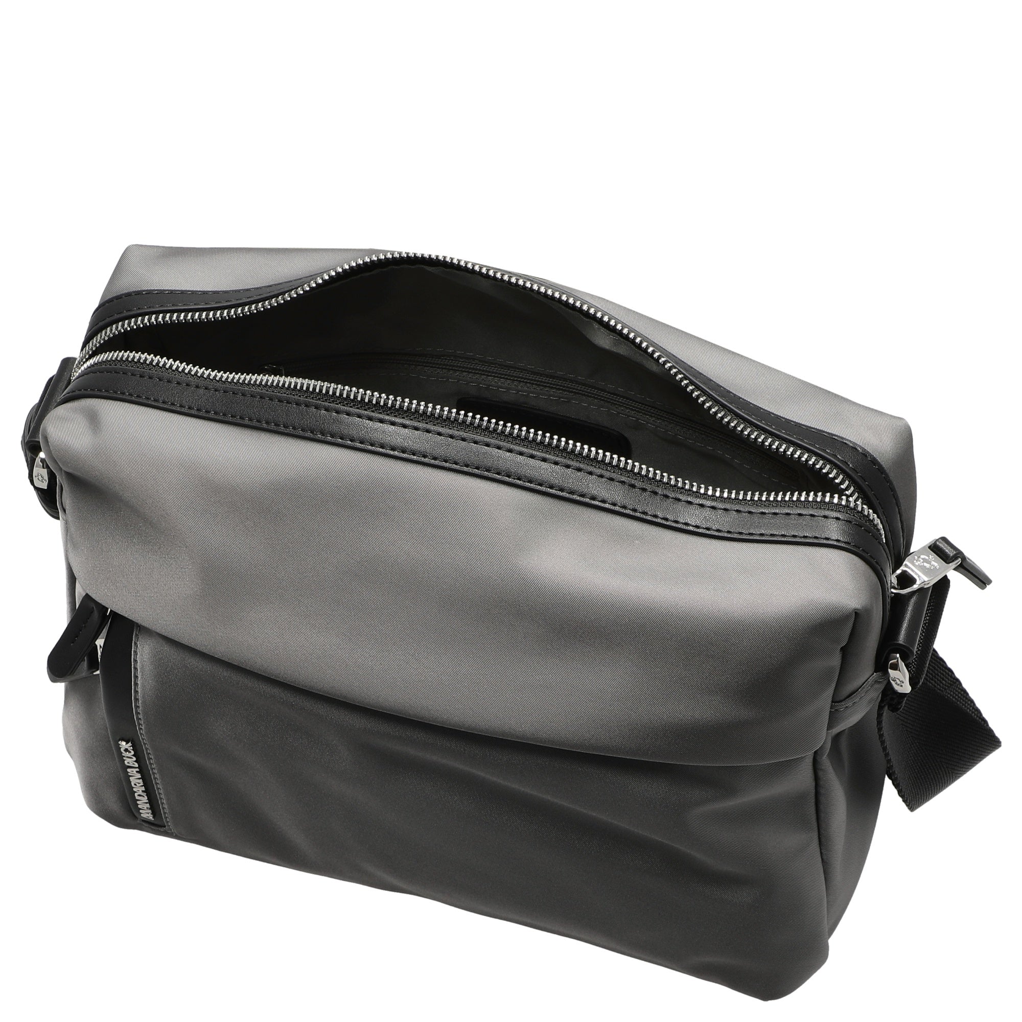 Descubra el elegante Bolso bandolera Mandarina Duck Hunter en el sofisticado color smoke blue. Este bolso combina sin esfuerzo un diseño deportivo con un toque chic y es el compañero ideal para la vida urbana diaria.