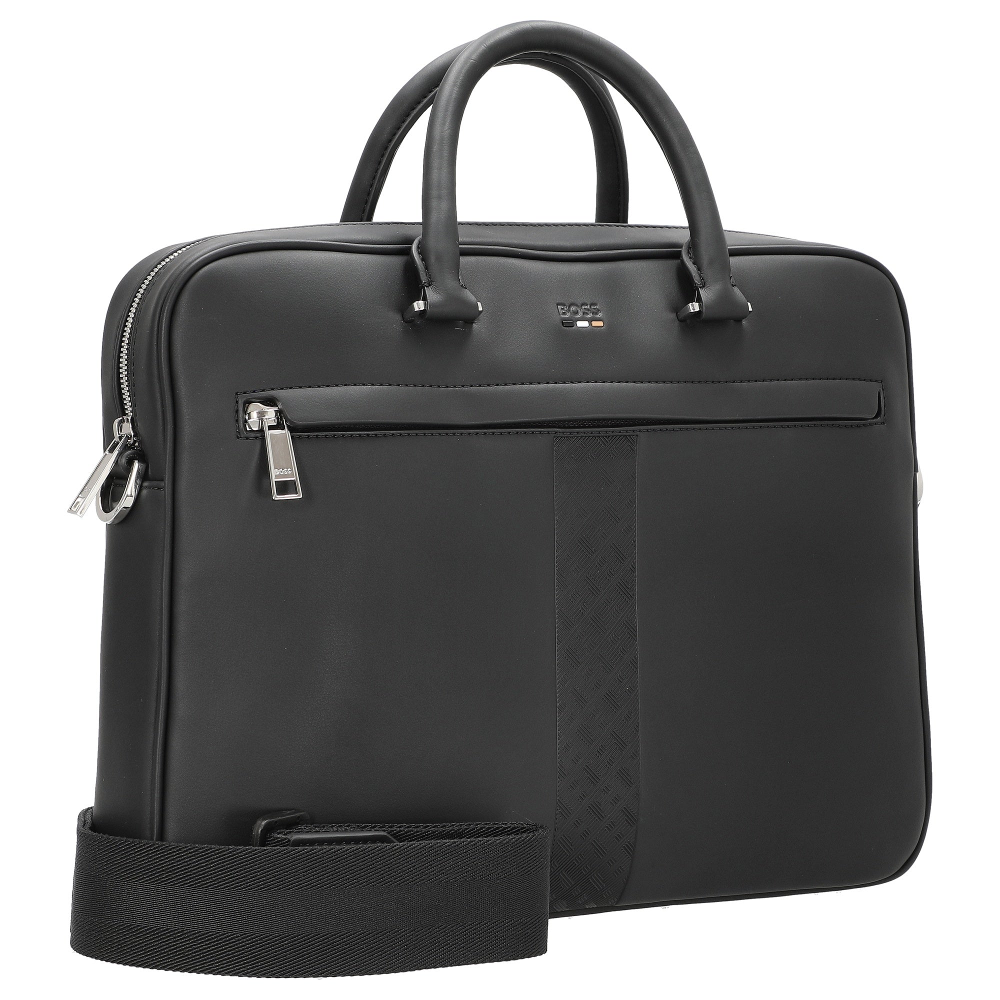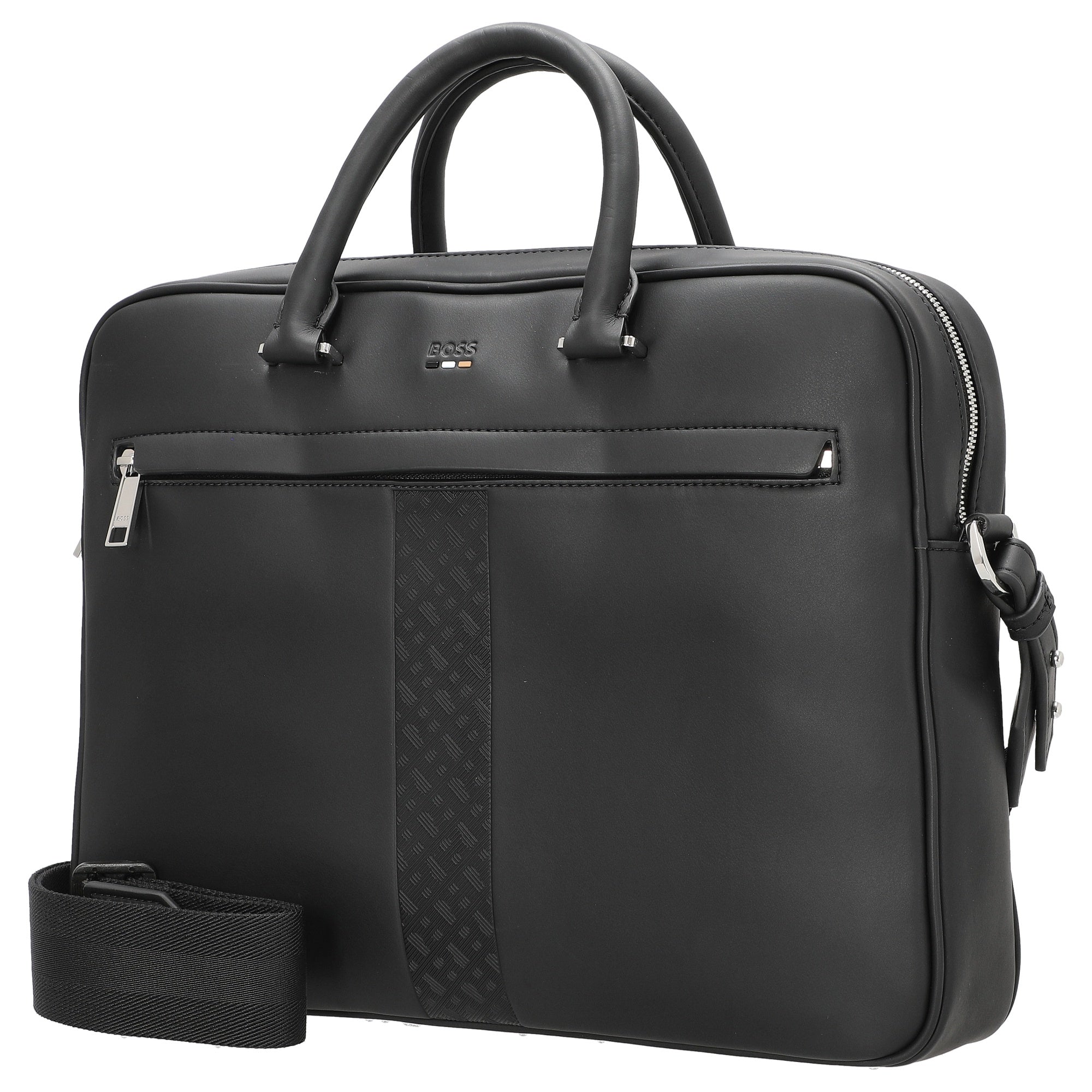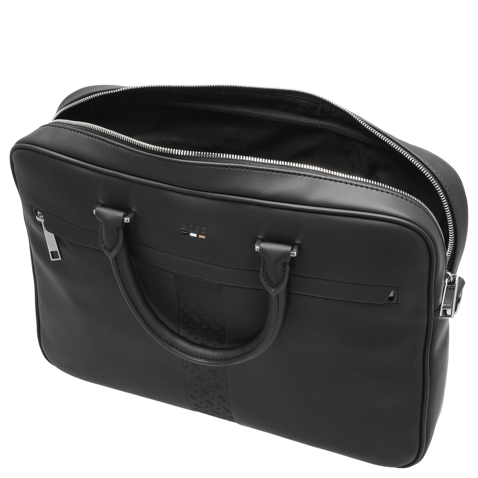 El maletín BOSS Ray MS en negro es el compañero ideal para quienes valoran materiales sostenibles y un diseño funcional en el día a día empresarial.