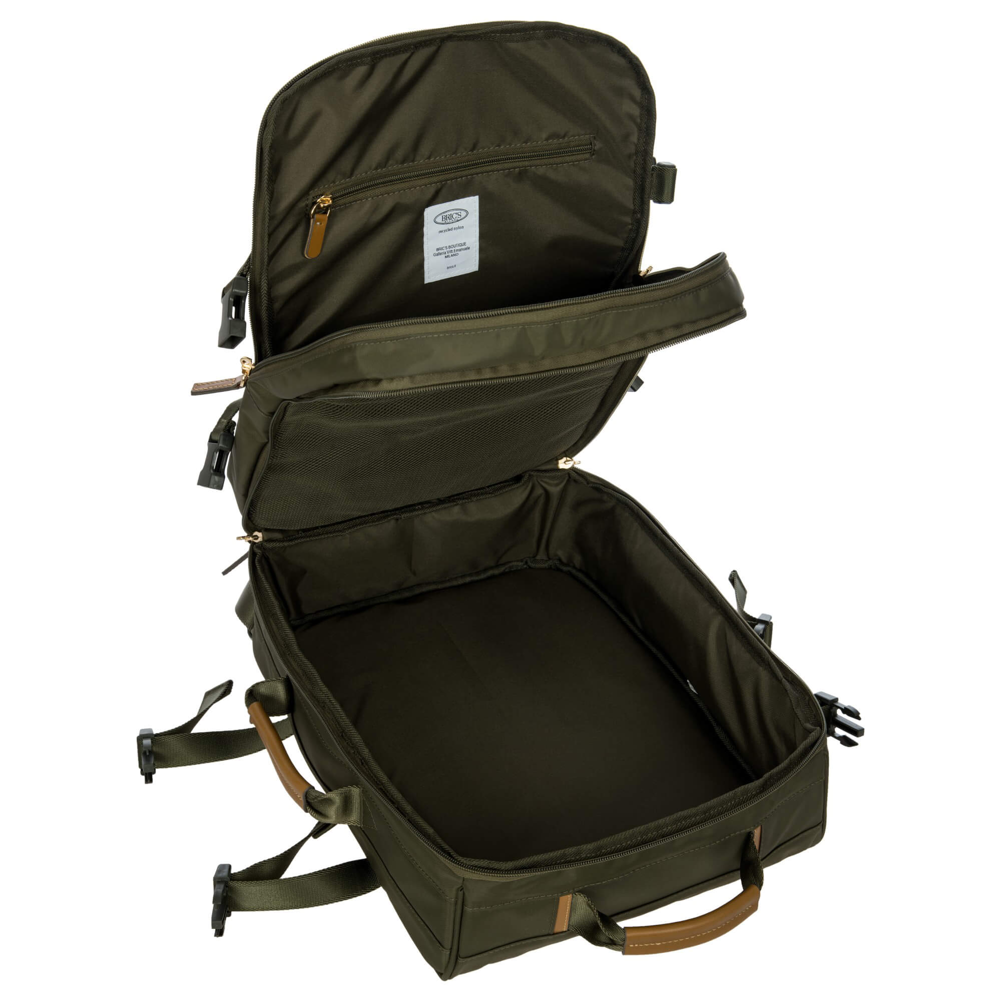 Descubra la mochila de viaje Brics X-Bag en el elegante color Oliva. Esta mochila espaciosa y cuidadosamente organizada, hecha de nylon satinado de alta calidad, es el compañero perfecto para sus viajes. Con un diseño bien pensado, ofrece tanto estilo como funcionalidad.