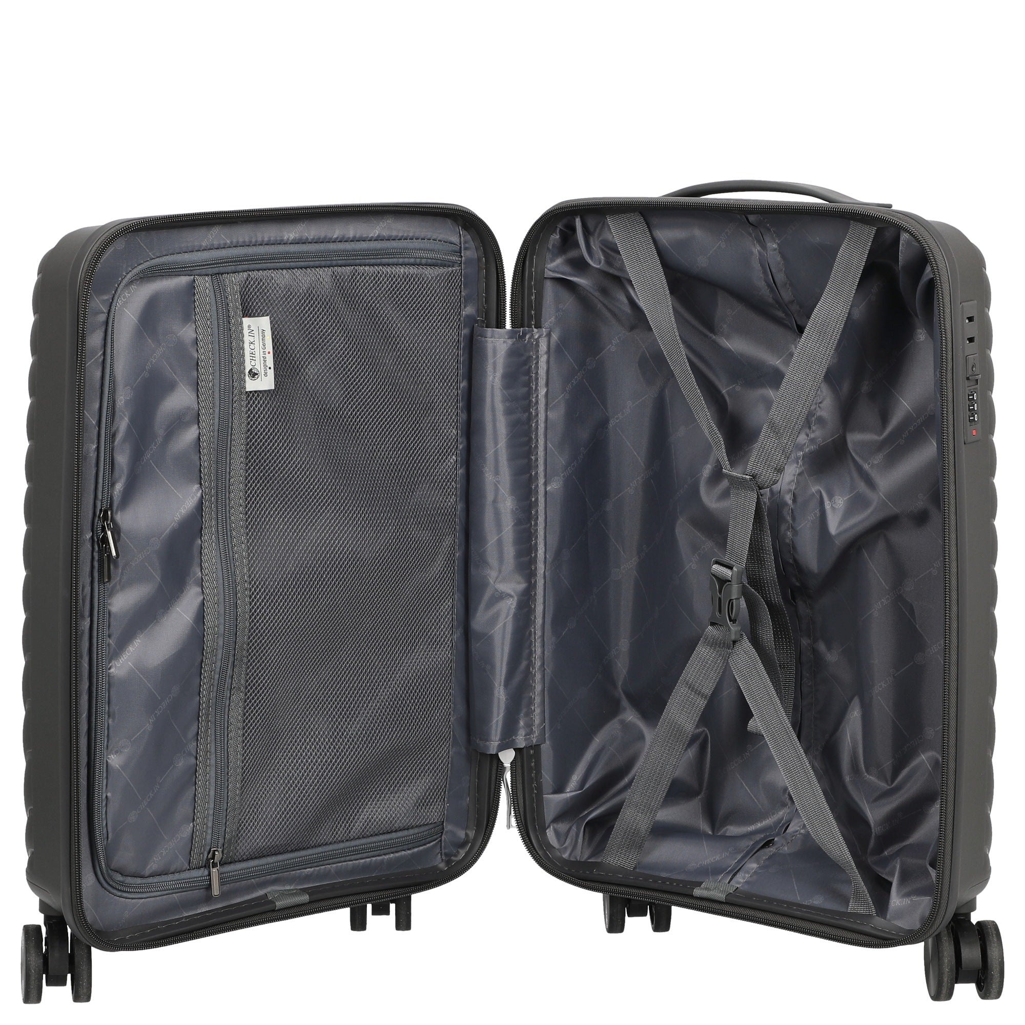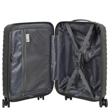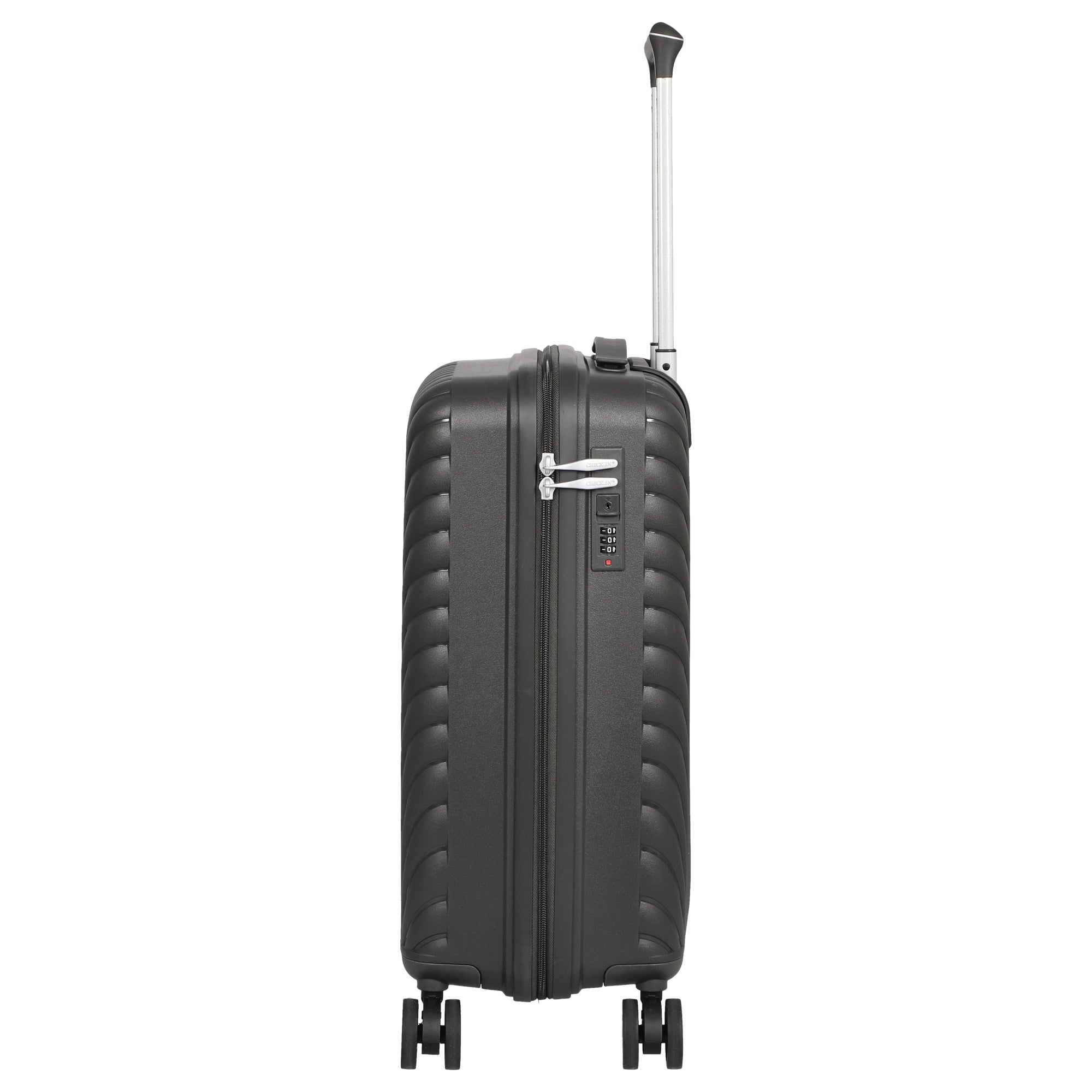 El trolley CHECK.IN Sydney de 4 ruedas, tamaño S, en color antracita es un acompañante funcional para viajes cortos y de negocios. Con una altura compacta de 55 cm, ofrece un espacio de almacenamiento práctico con un peso reducido de 2,7 kg.