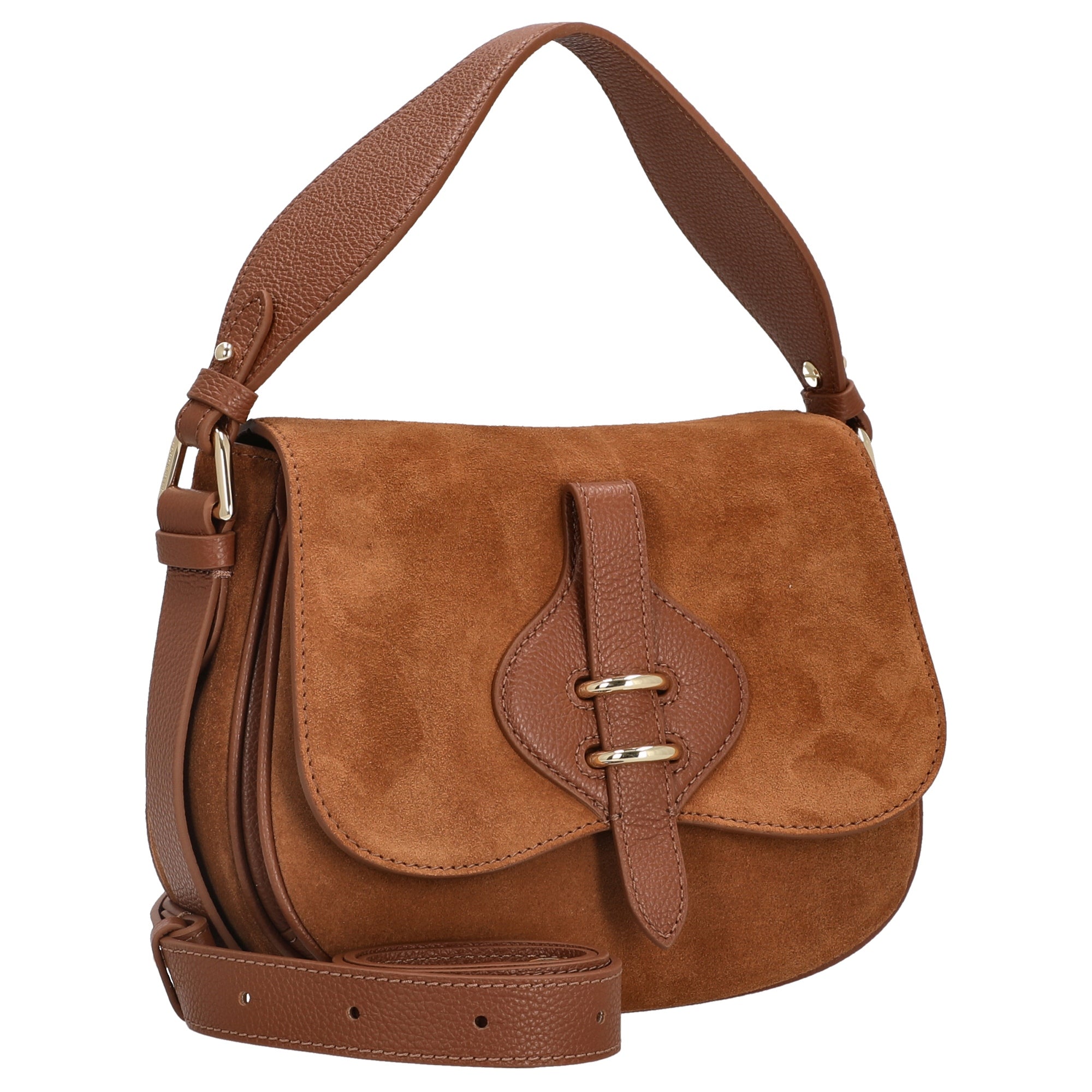 Este bolso bandolera en cognac es ideal para mujeres con sentido de la moda que valoran un acabado de alta calidad y múltiples posibilidades de combinación.
