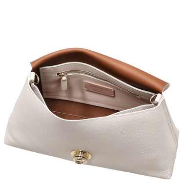 El bolso de hombro Coccinelle Nikla en elegante tono perla y coñac combina un diseño atemporal con funcionalidad práctica. Este bolso de bandolera estiloso es un acompañante versátil para mujeres con sentido de la moda que valoran los detalles de alta calidad.