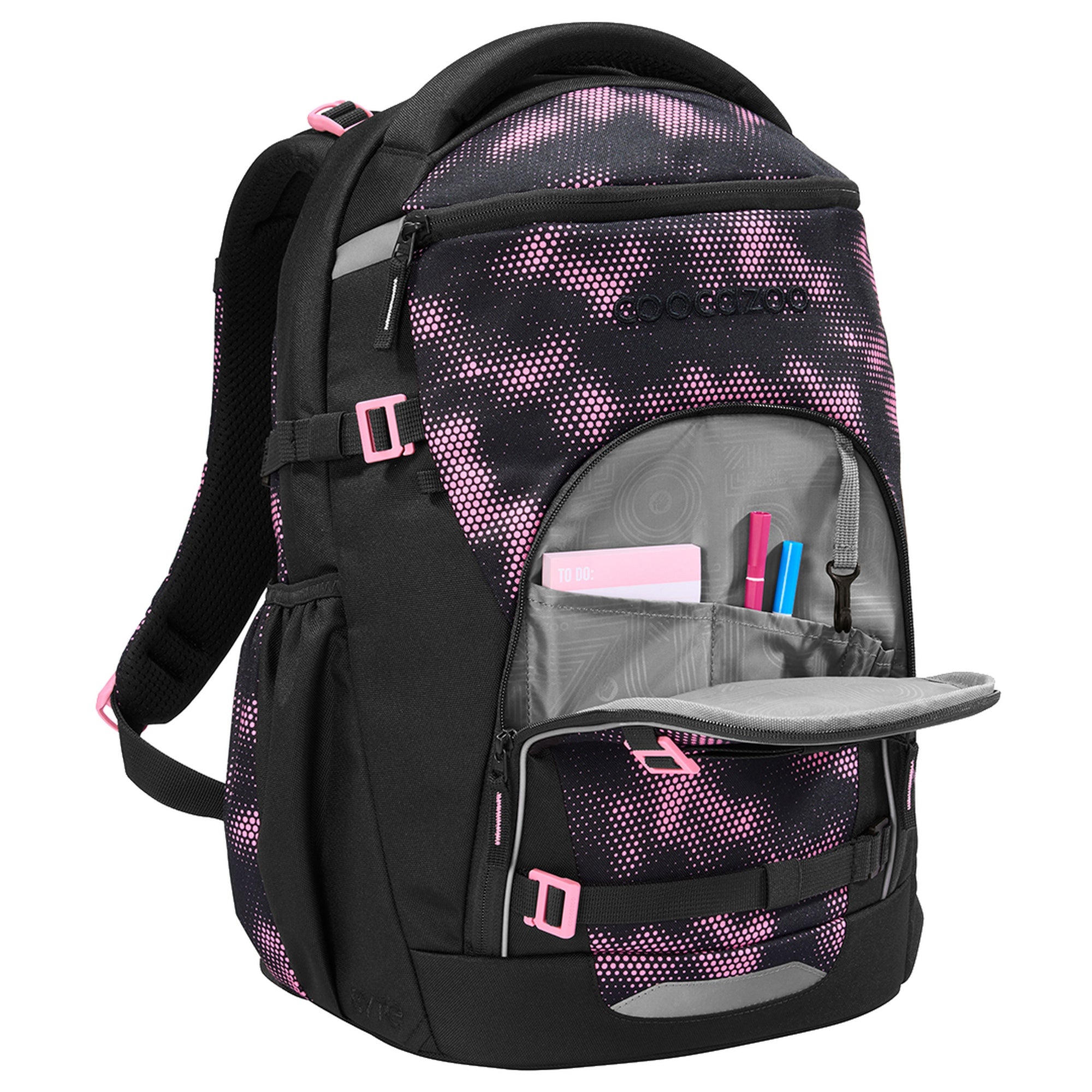 La mochila escolar Coocazoo Byte en el color Pink Illusion es un acompañante pensado para el día a día escolar que combina comodidad y seguridad.