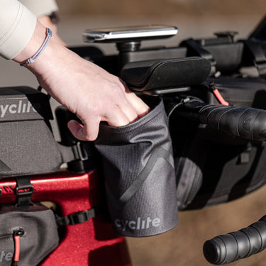 La Cyclite Food Pouch es una bolsa funcional para manillar en negro, diseñada específicamente para un acceso rápido durante el trayecto.