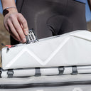 La CYCLITE Top Tube Bag Large 02 en gris claro es un acompañante robusto y funcional para los entusiastas del bikepacking que valoran el acceso directo y un espacio de almacenamiento suficiente durante el recorrido.