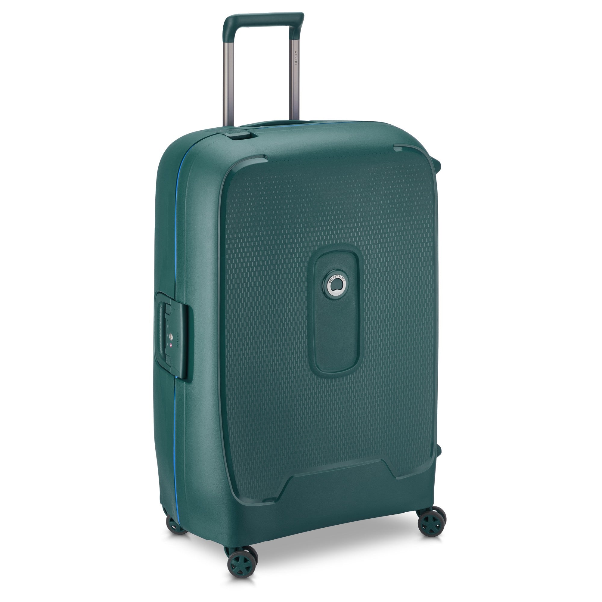 Descubra el trolley Delsey Paris Moncey MR de 4 ruedas en un elegante tono verde, que no solo destaca por su diseño moderno, sino también por su funcionalidad. Este trolley de tamaño L está fabricado con polipropileno ligero de alta calidad y le ofrece suficiente espacio para todas sus necesidades de viaje.