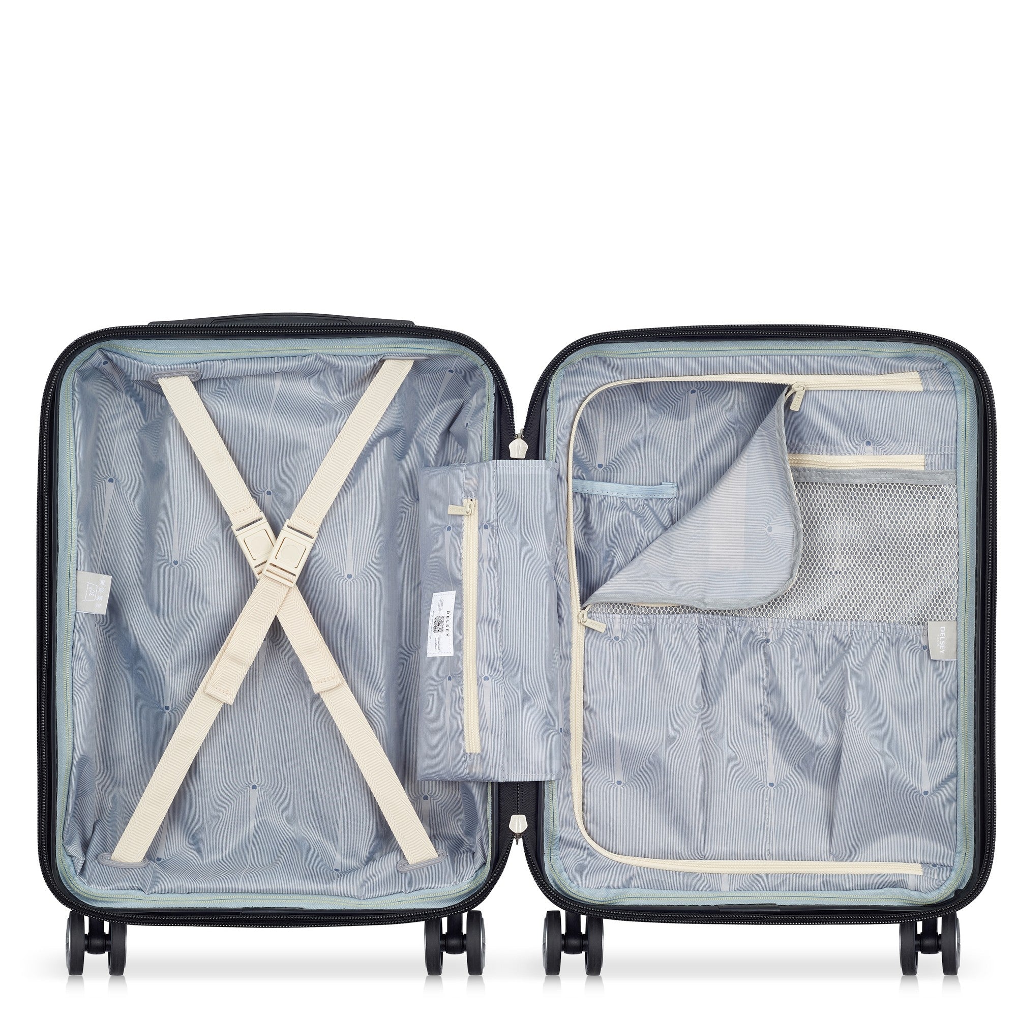 En el interior, la maleta ofrece suficiente espacio para sus objetos personales y está idealmente organizada para facilitar el empaquetado. Disfrute de las ventajas de un compañero de viaje elegante y funcional que ofrece tanto seguridad como comodidad.