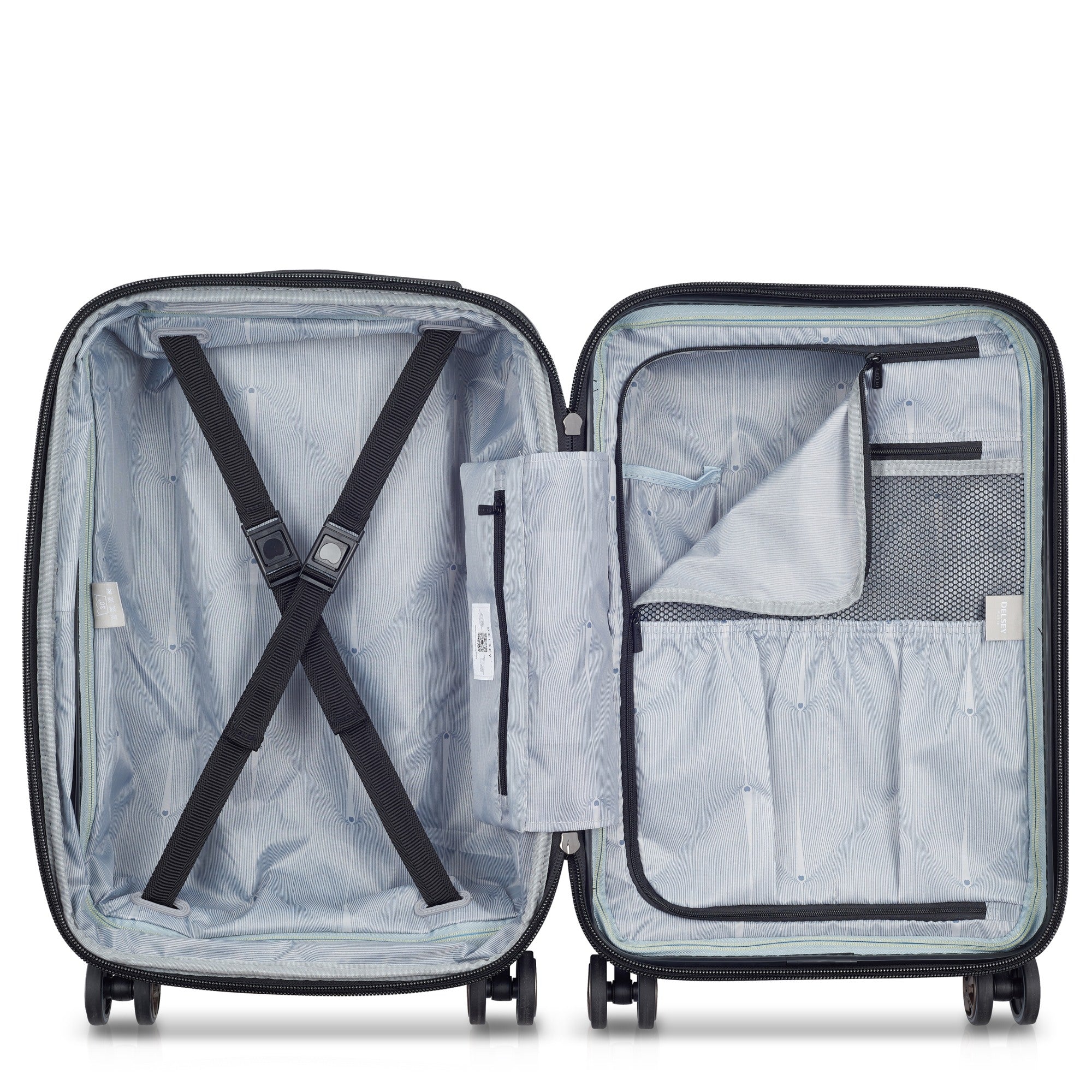 - el logo de Delsey en la parte frontal, que representa calidad y estilo