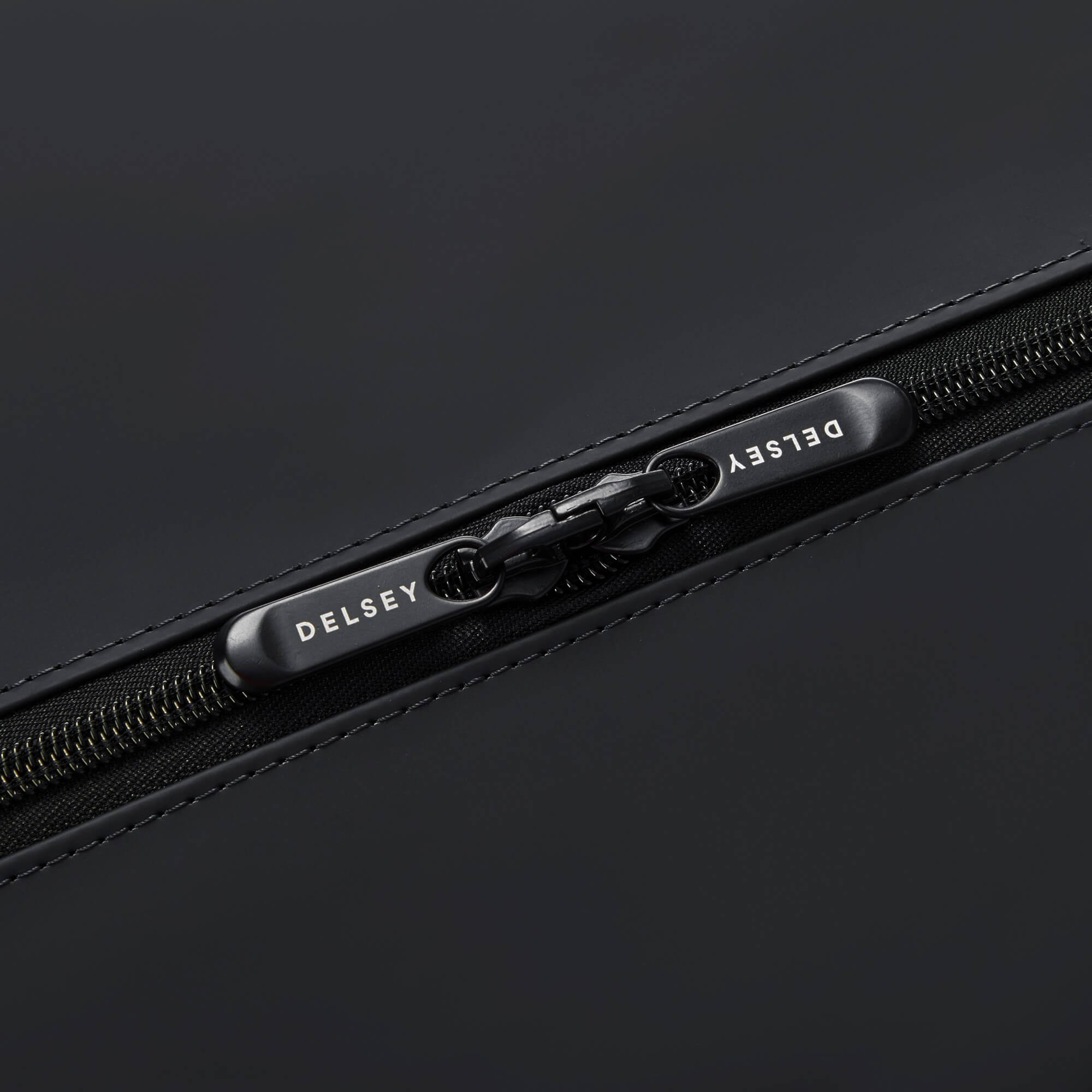 - El elegante logo de Delsey Paris en la parte frontal, que simboliza calidad y elegancia