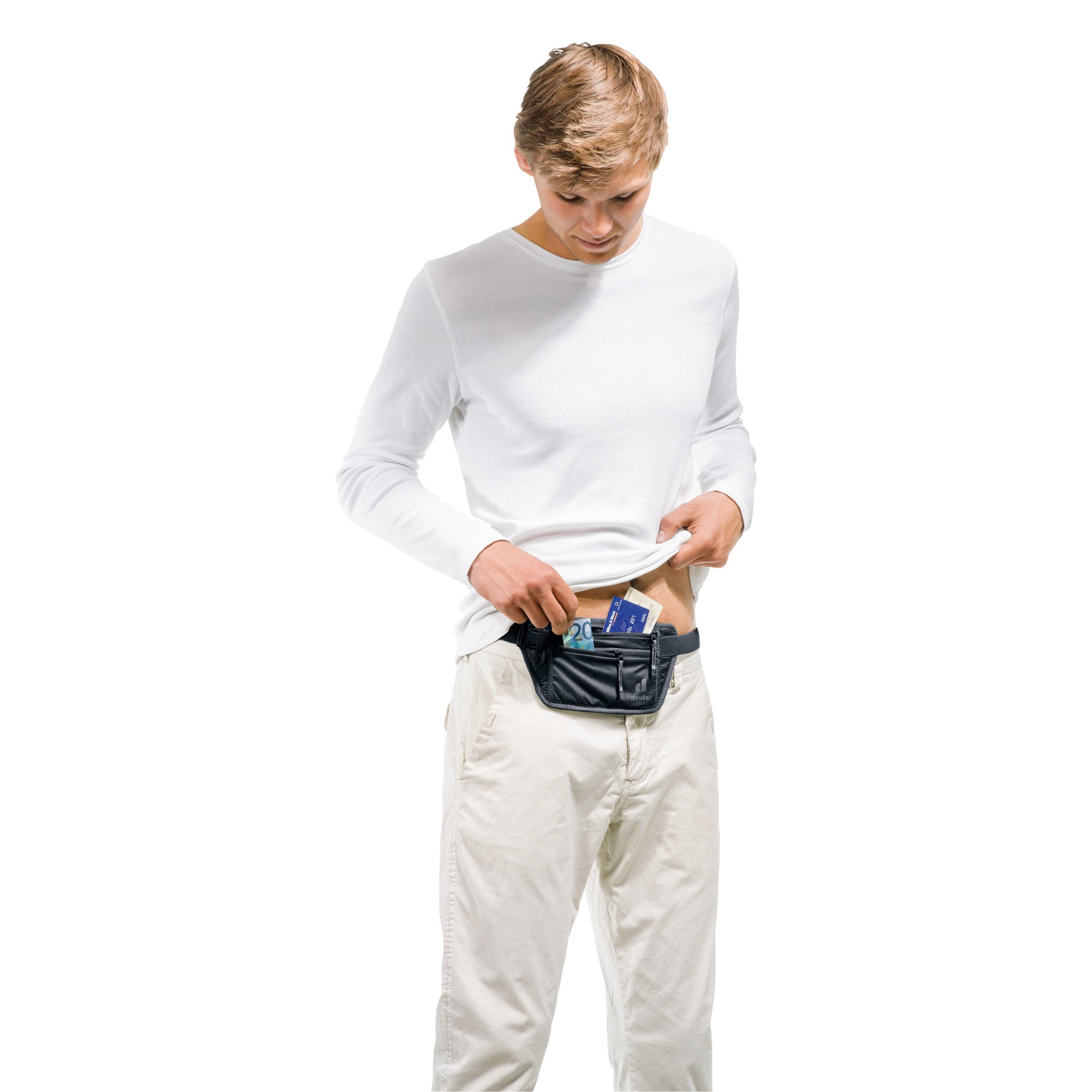 El Deuter Security Money Belt l en negro es la riñonera ideal para mujeres que valoran la seguridad y la comodidad tanto en viajes como en el día a día. Su diseño delgado y ergonómico asegura que el cinturón se adapte perfectamente al cuerpo y pueda llevarse discretamente bajo la ropa, manteniendo los documentos importantes siempre protegidos y al alcance.
