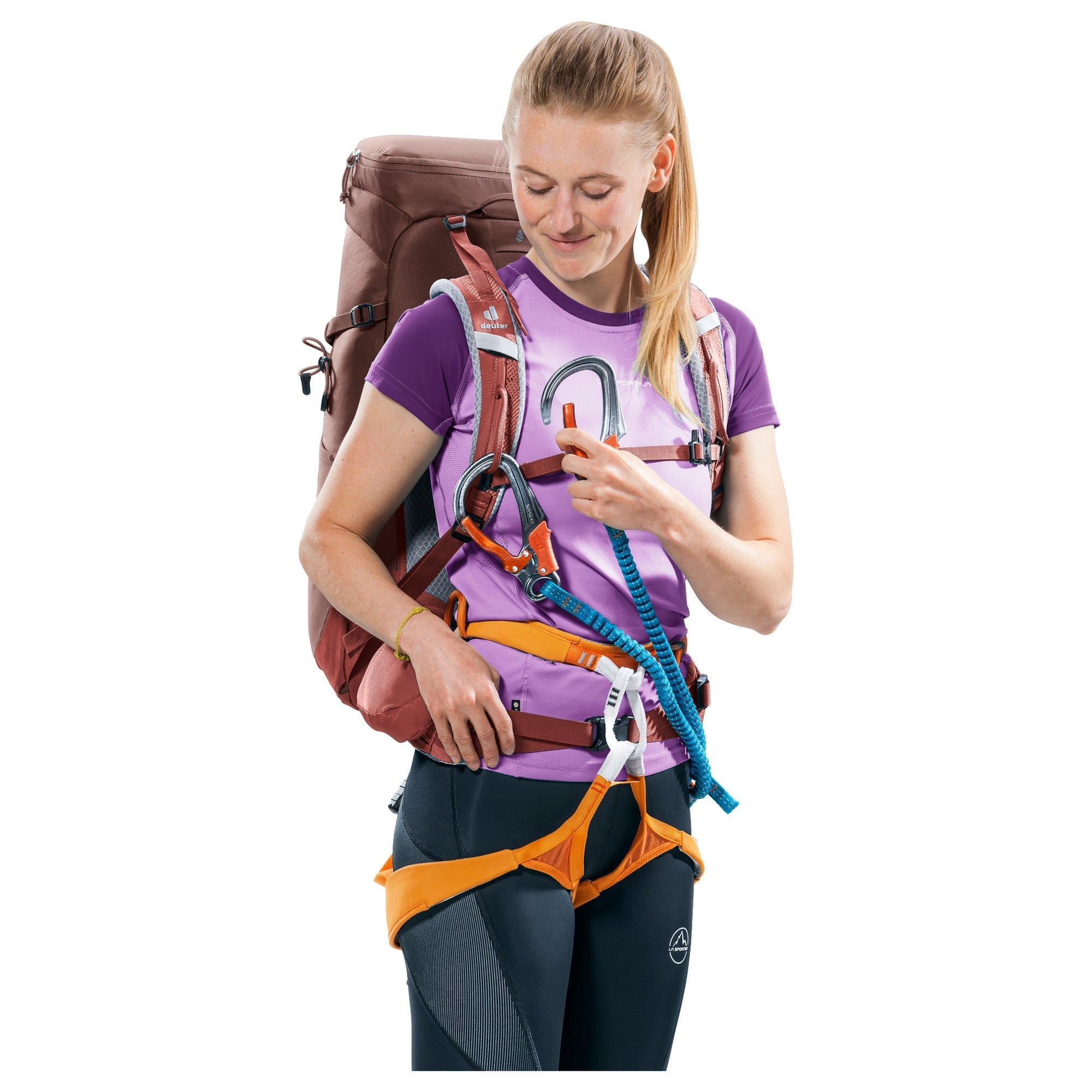 - Los tirantes ajustables y móviles aseguran un ajuste perfecto y ofrecen una sujeción para su set de escalada.