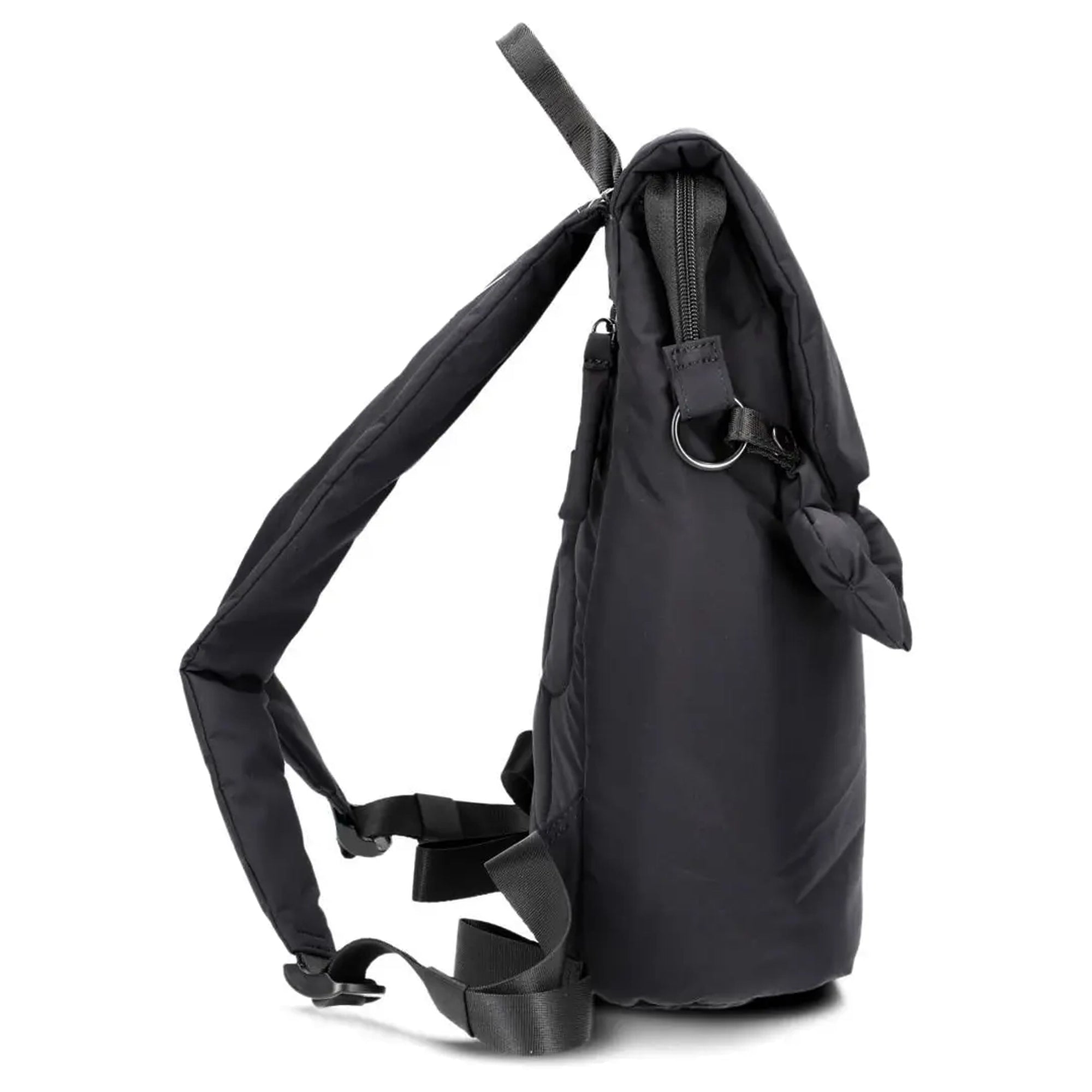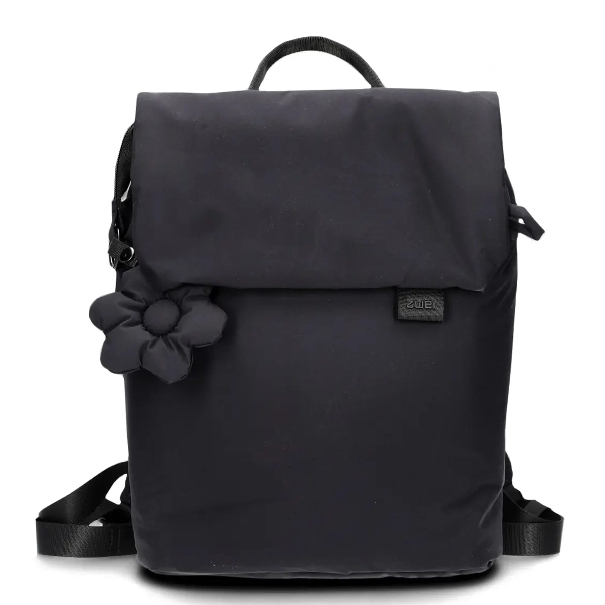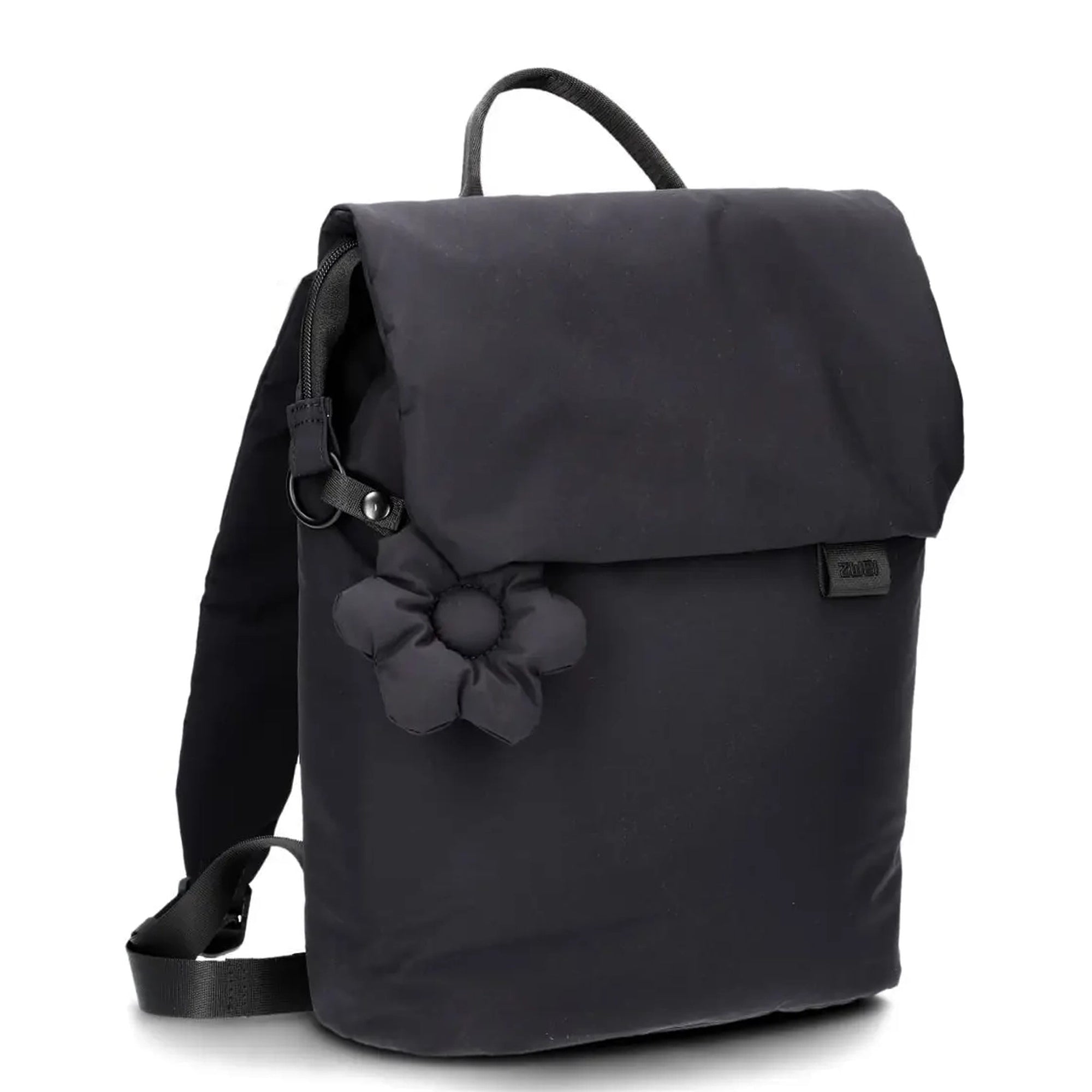 - Colgante de flores desmontable – aporta un toque personal a la mochila negra