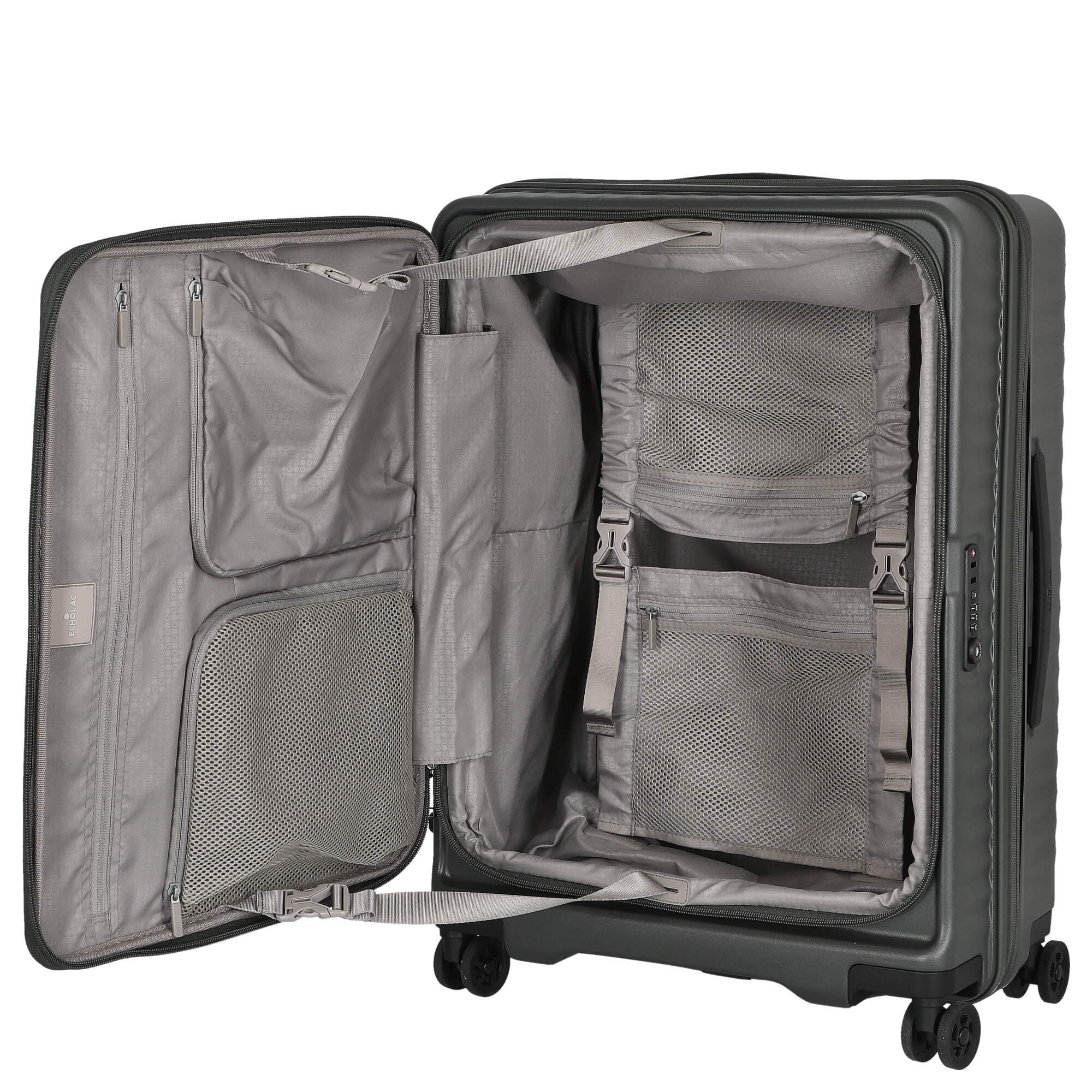 El carro Echolac Celestra FA en verde oliva profundo no solo es funcional, sino también elegante – perfecto para el viajero moderno que valora la calidad y el diseño.