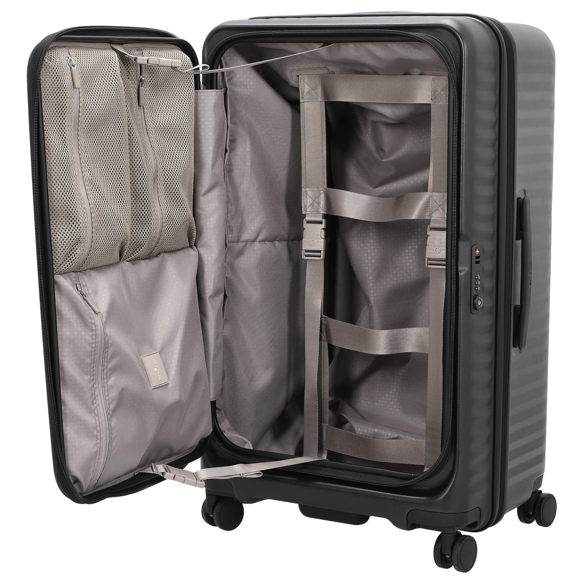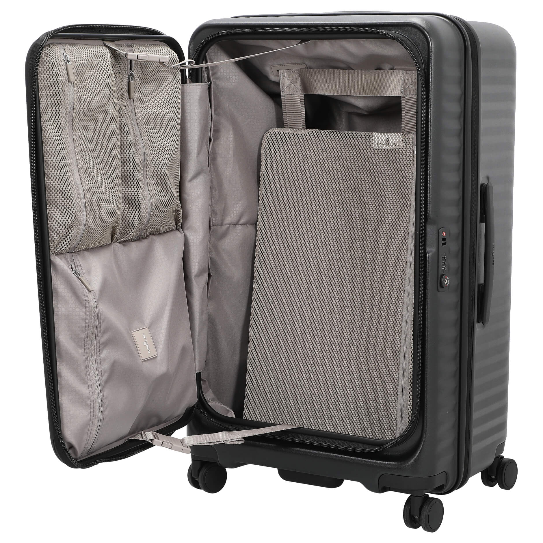 - Apertura frontal innovadora: Ofrece un acceso fácil a su equipaje sin tener que abrir toda la maleta.
