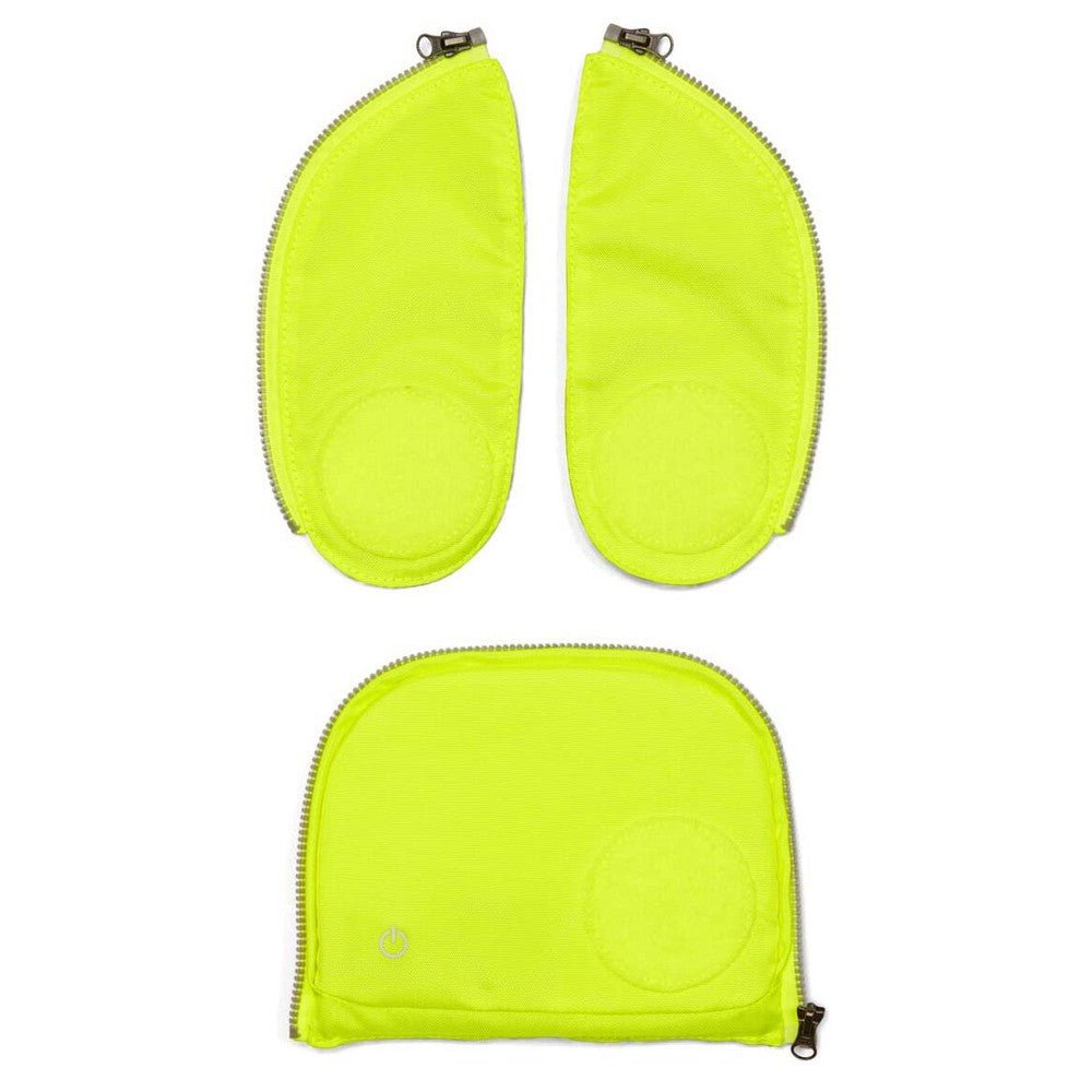 Descubra el innovador Ergobag Zip-Set en un brillante color amarillo, que no solo destaca por su color llamativo, sino que también aumenta su seguridad en la carretera. Con un total de 19 LEDs integrados, este set de tres piezas garantiza que sea bien visible incluso en condiciones de poca luz.