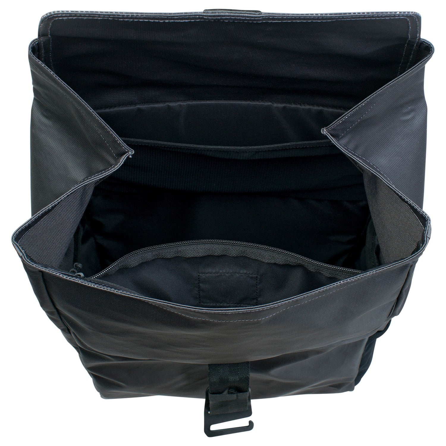 - Volumen flexible: La tapa con cierre de gancho de aluminio permite ajustar el compartimento principal a la cantidad de contenido.