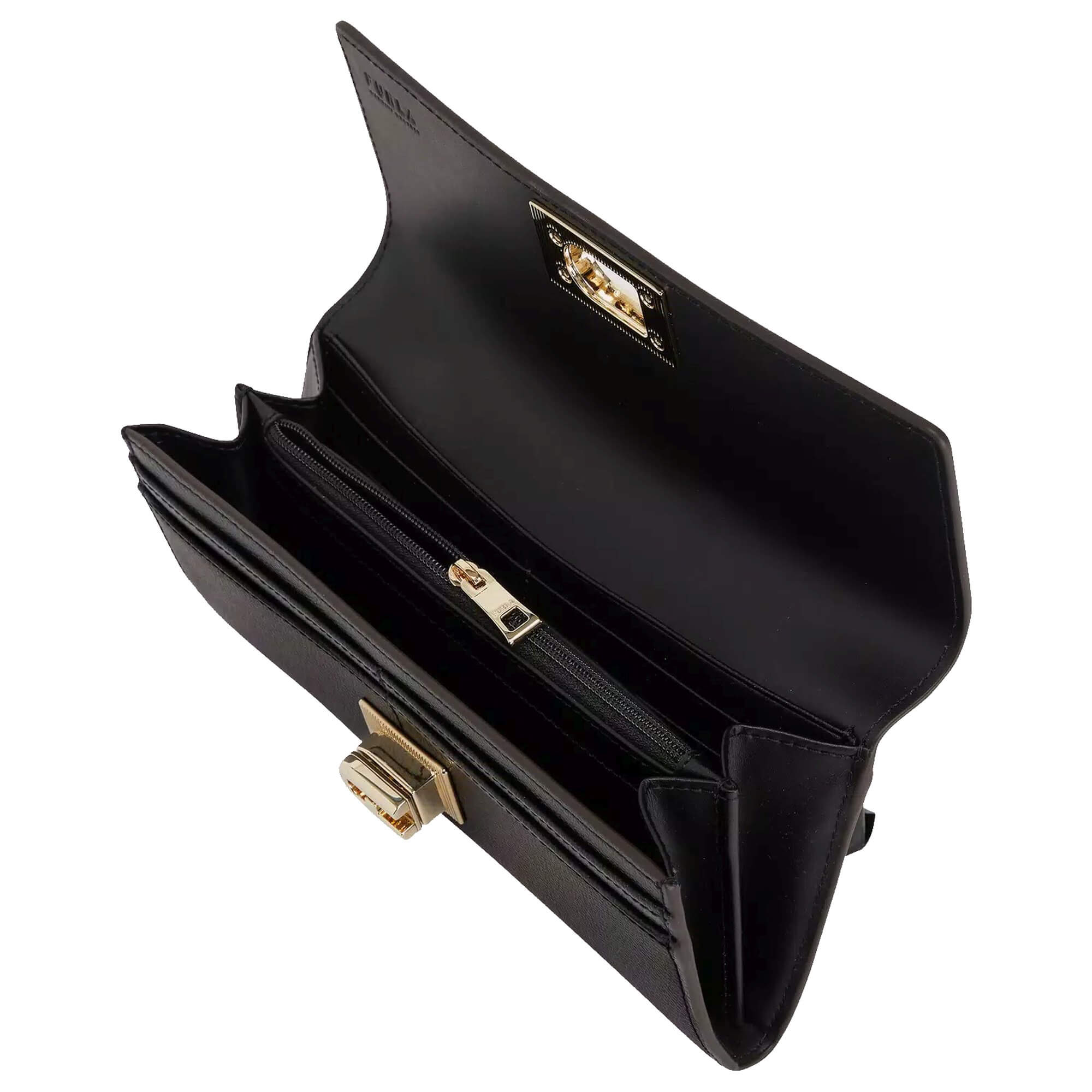 - El cierre está decorado con el elegante logo de Furla, un símbolo de estilo y calidad