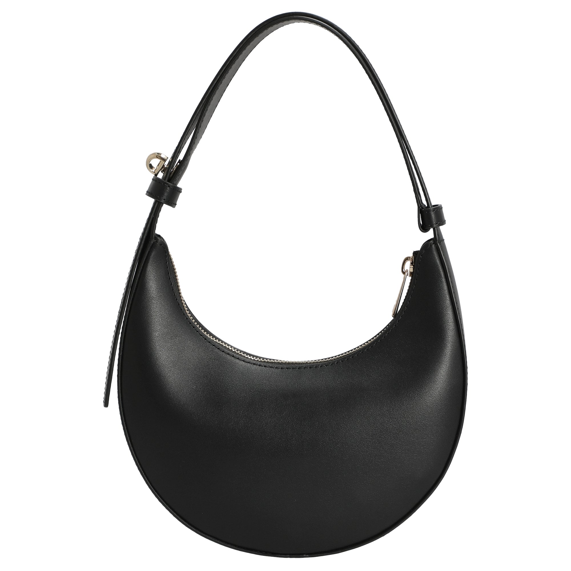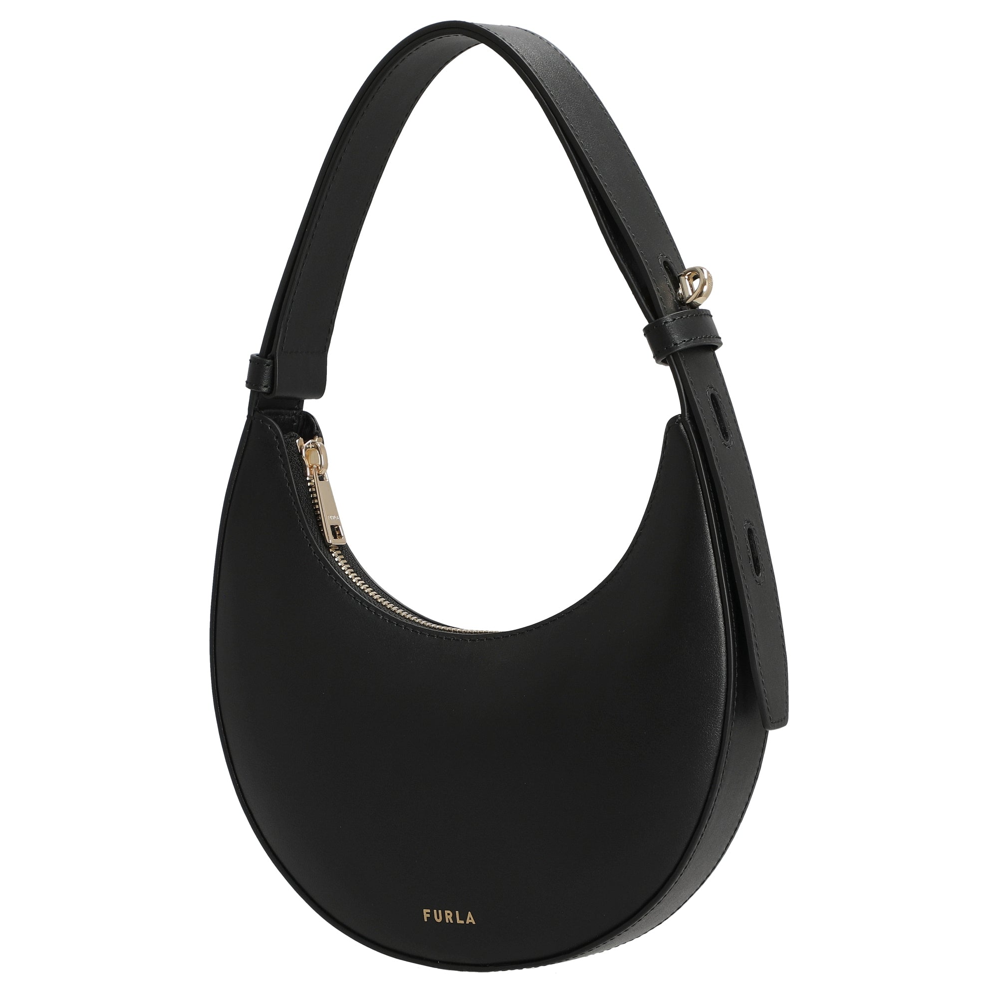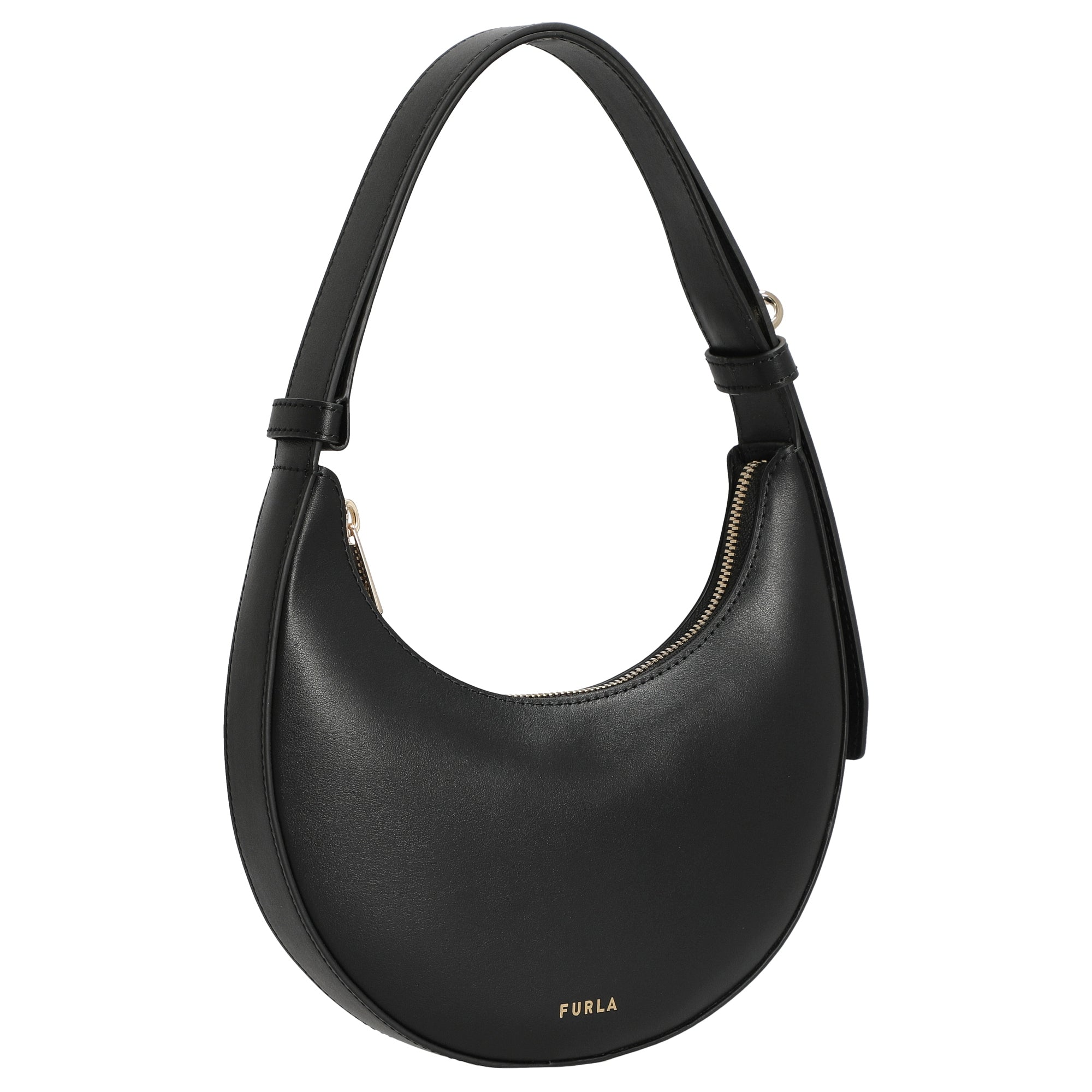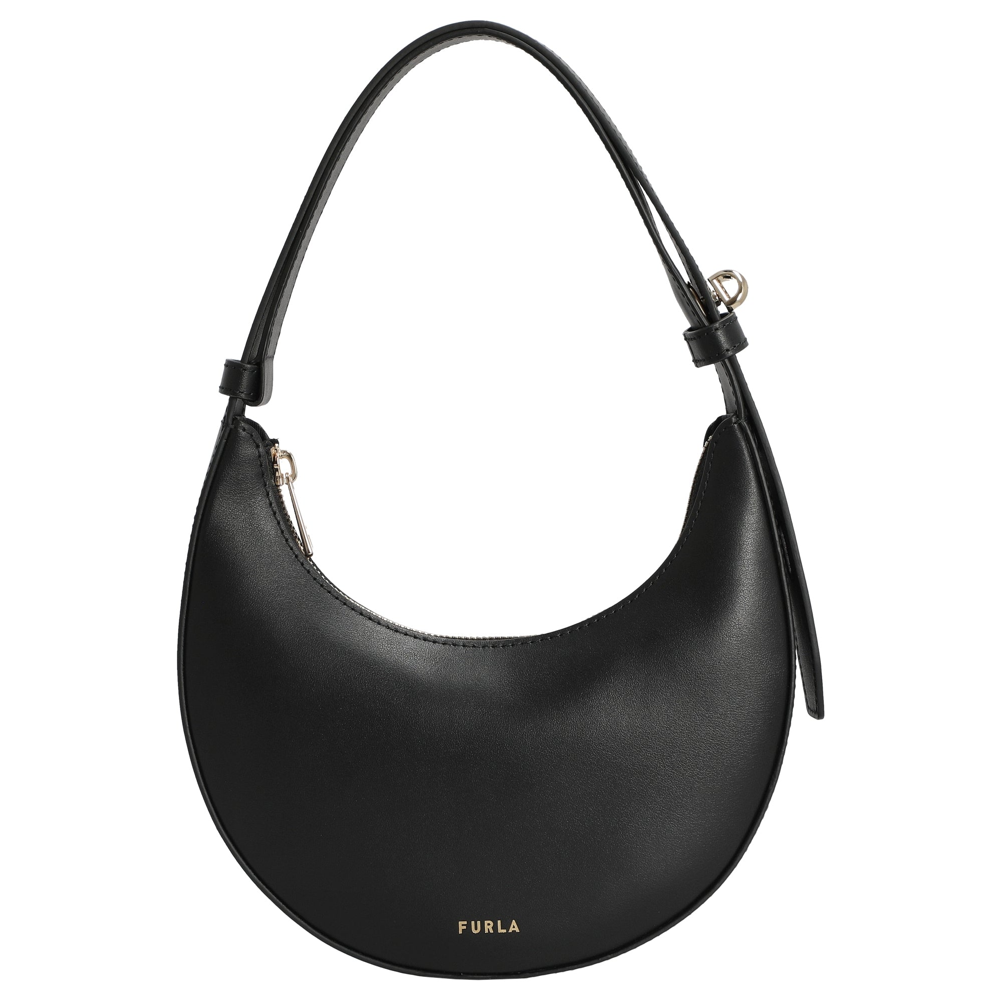 El bolso de hombro Furla Delizia Mini en elegante negro (nero) se presenta como un accesorio estiloso para mujeres conscientes de la moda que valoran la alta calidad y el diseño atemporal. Su forma compacta y semilunar, elaborada en suave piel de becerro, combina la elegancia urbana con la comodidad práctica.