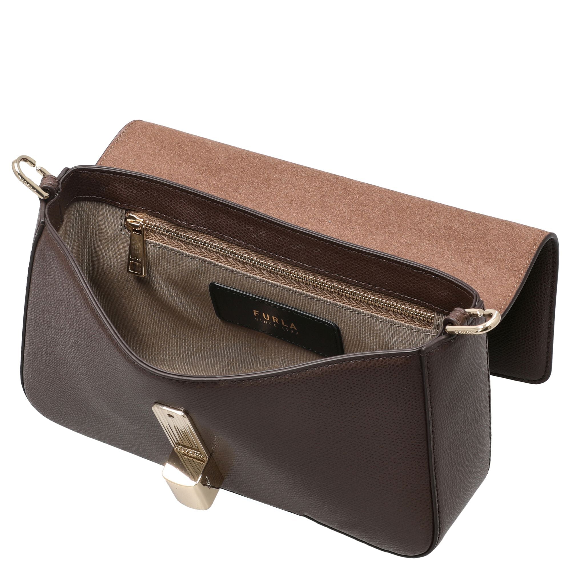 - Detalles exclusivos: cierre magnético con herrajes metálicos cilíndricos y el icónico logo Furla Arch que aportan acentos de moda