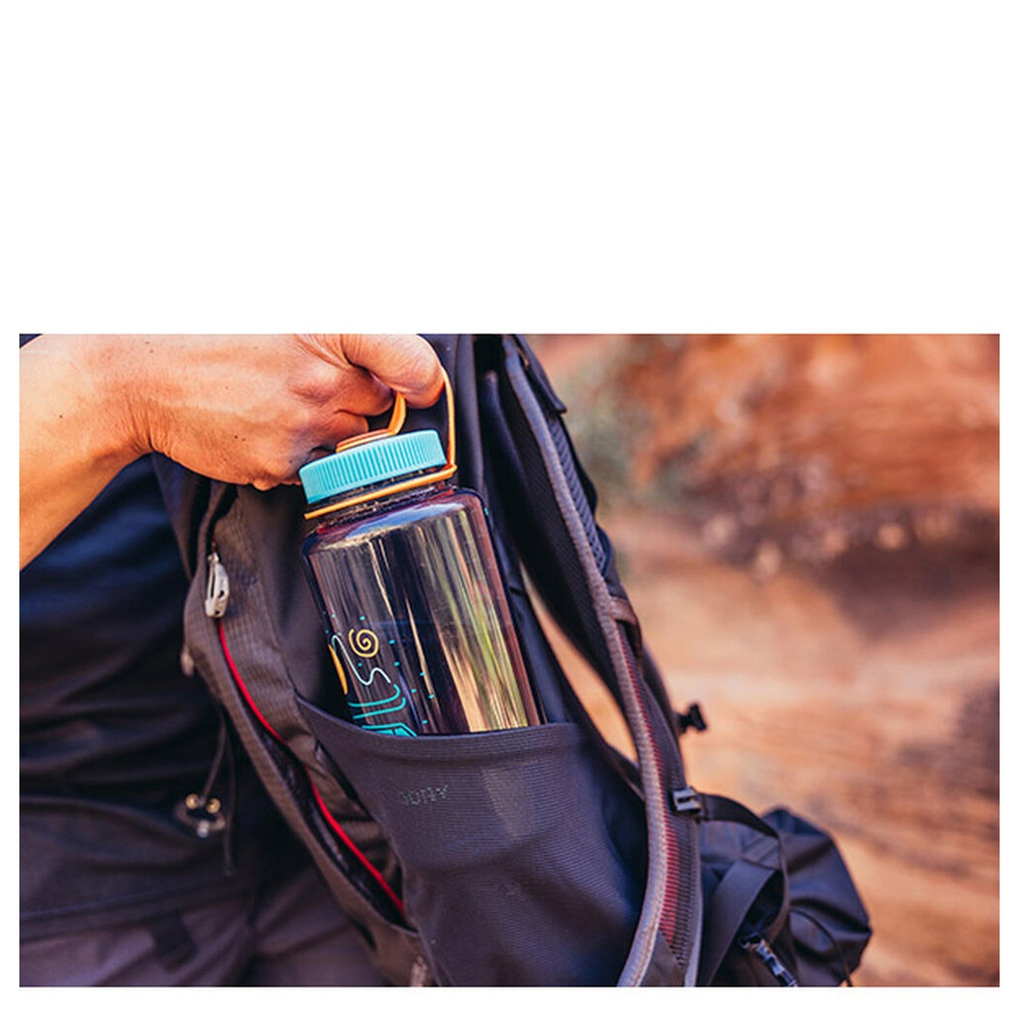 - Grandes bolsillos laterales de tejido de malla elástica, adecuados para botellas de agua grandes