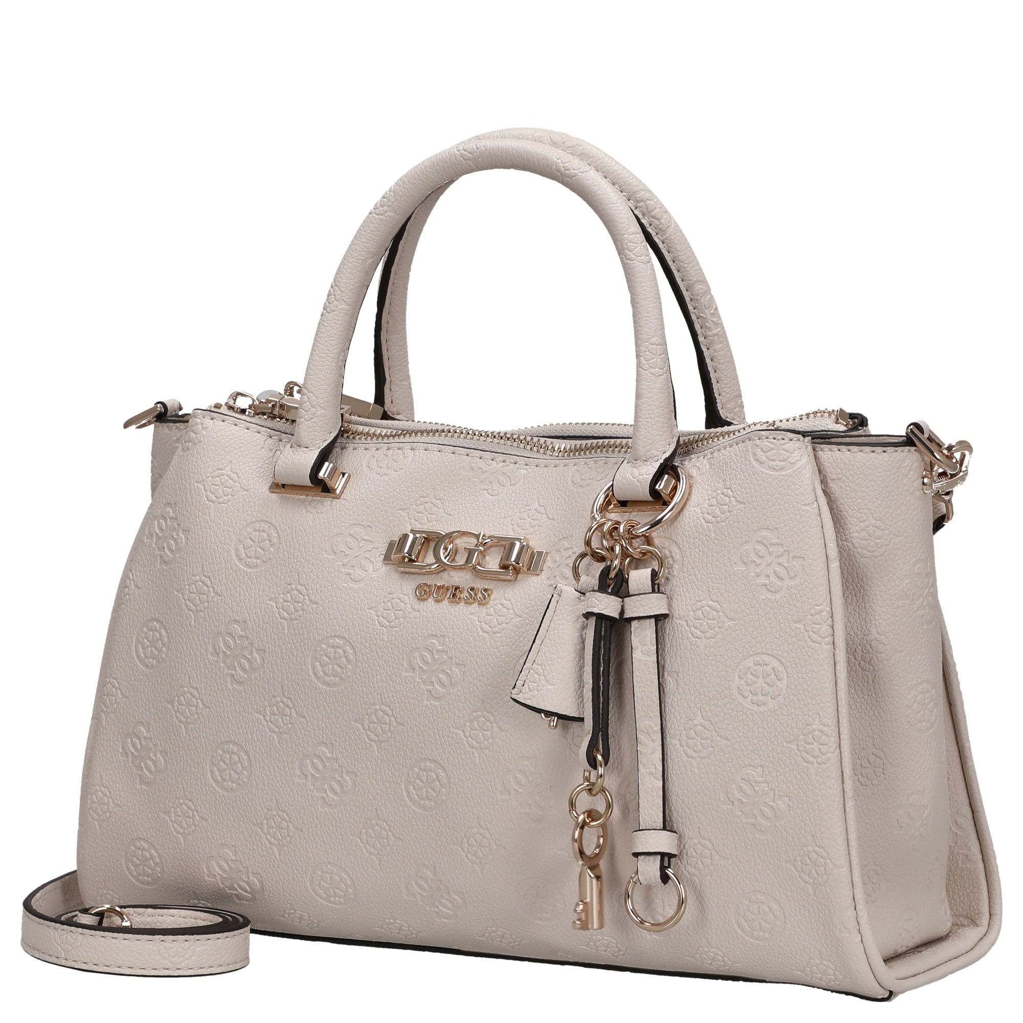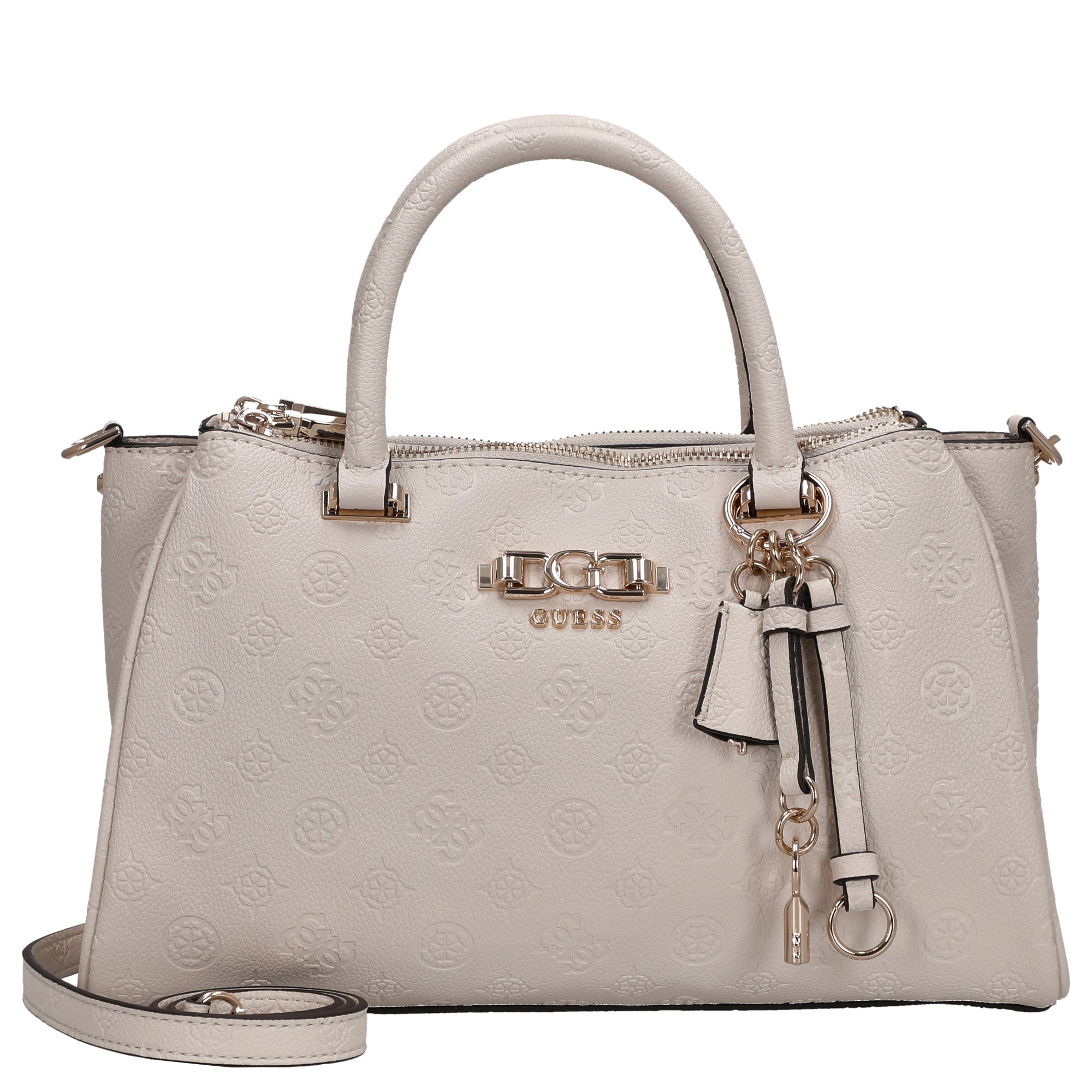 Un bolso de mano elegante que combina la sofisticación de la moda con la practicidad para el uso diario. El Guess Anise Triple Comp Satchel en el color stone logo destaca por su diseño claro y detalles de alta calidad que realzan cualquier conjunto.