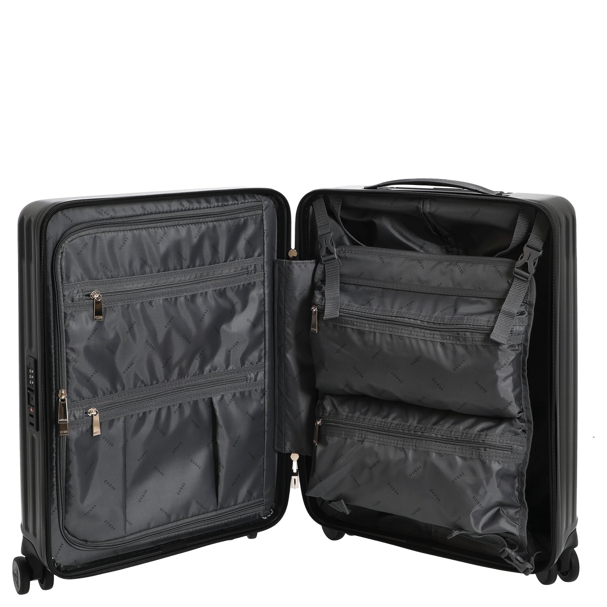 El Guess Centennial 18 IN combina detalles funcionales con un diseño claro, siendo así un compañero fiable para cualquier viaje.
