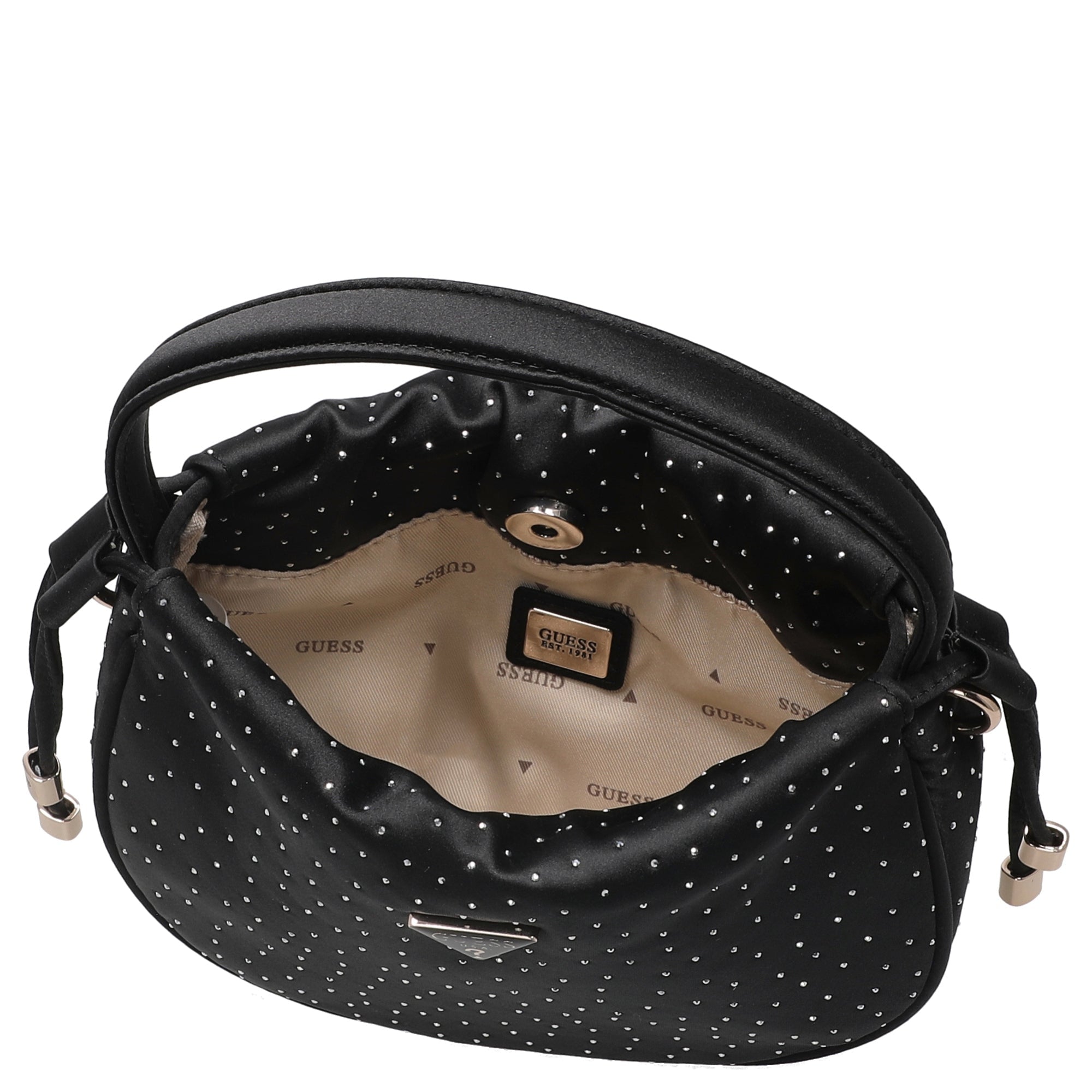 Tanto para un conjunto de negocios como para un evento nocturno, el bolso de mano Guess Elsie en negro convence por su diseño elegante y su alta calidad de fabricación.