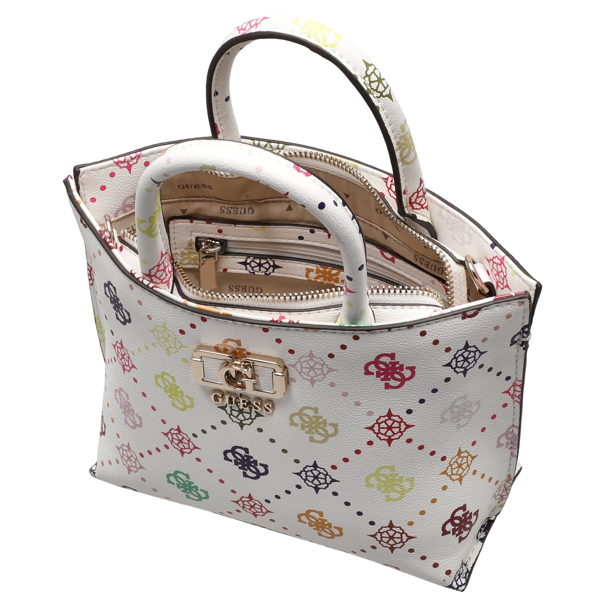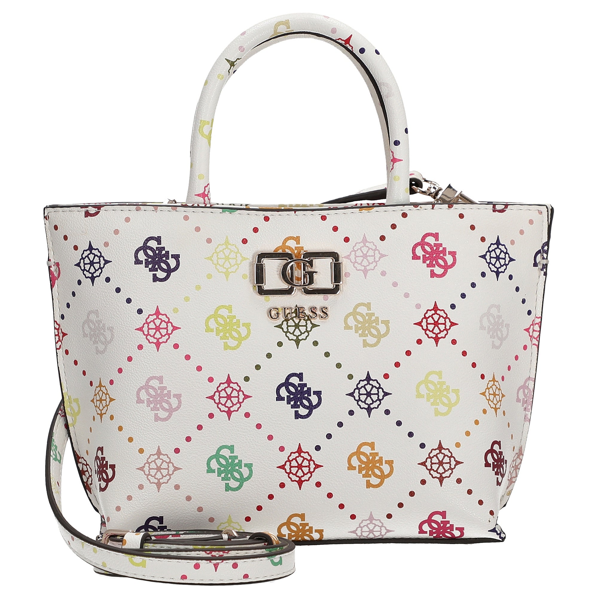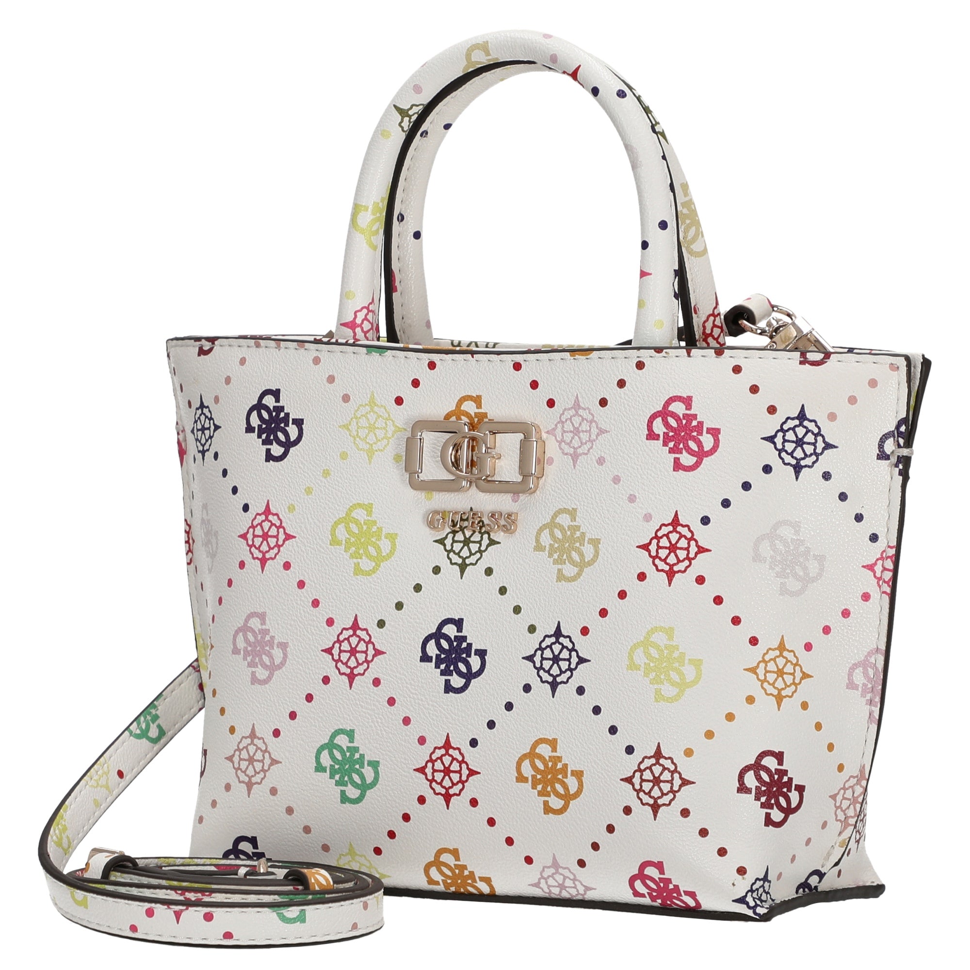 Guess Emelie Logo Mini Tote - Bolso de mano 19 cm (multi logo)