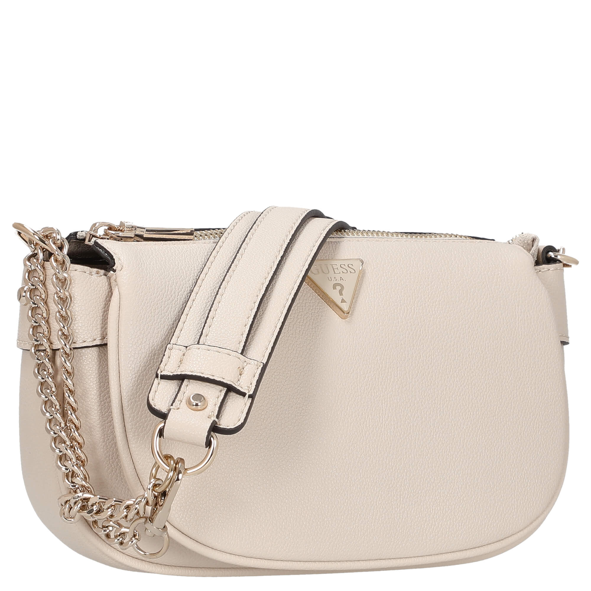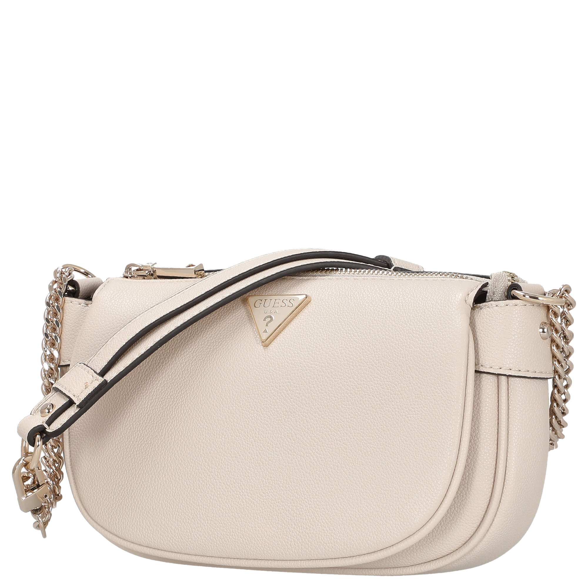 - Marcante logo de Guess: El logo metálico de Guess en la parte delantera hace una declaración de moda y subraya el carácter exclusivo de este bolso.