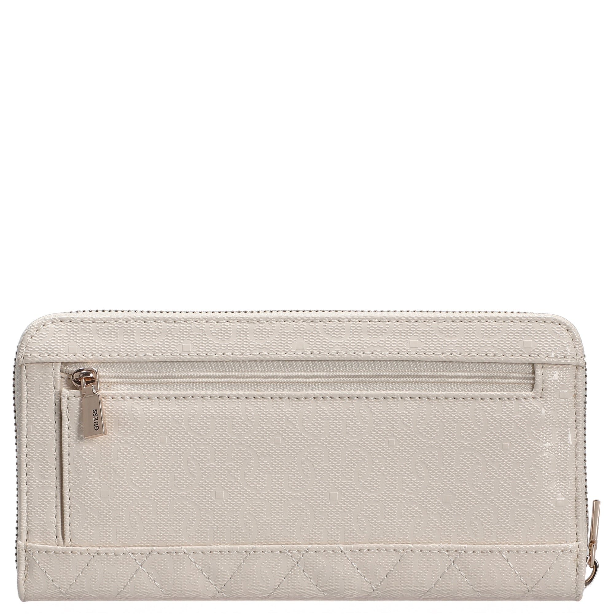 Tanto en el día a día como de viaje, la cartera Guess Isemay SLG Large Zip en blanco roto es la compañera ideal para usuarios con estilo que valoran la seguridad y el diseño.