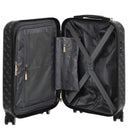 Por fuera, la maleta de cabina Guess Jesco no solo impresiona por su elegante color carbón, sino también por su construcción robusta. La maleta no solo es un compañero práctico, sino también un accesorio de moda que complementa perfectamente su equipo de viaje.