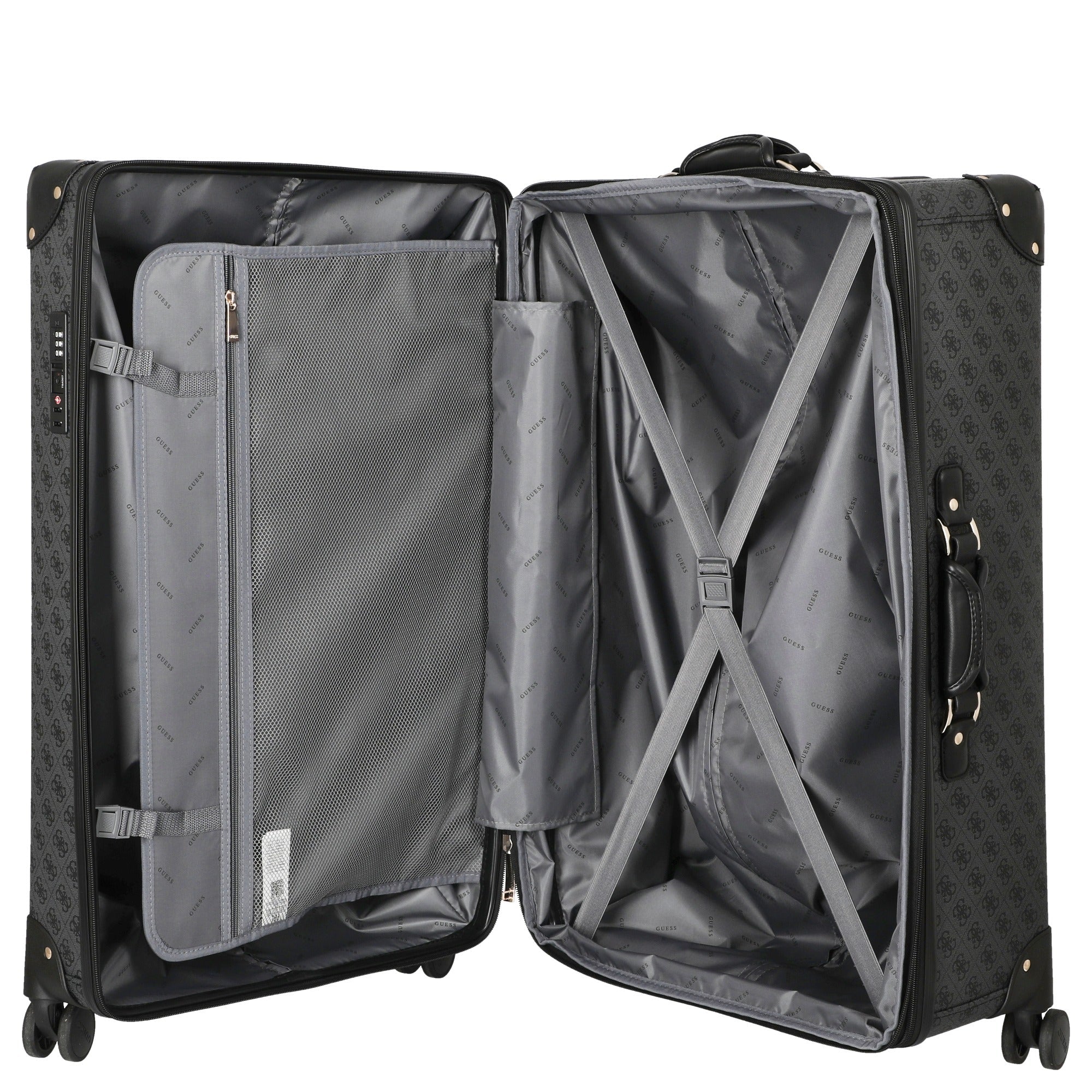 Der funktional gestaltete GUESS Trolley kombiniert ein elegantes Design mit praktischen Features und ist damit ein zuverlässiger Begleiter für anspruchsvolle Reisende.