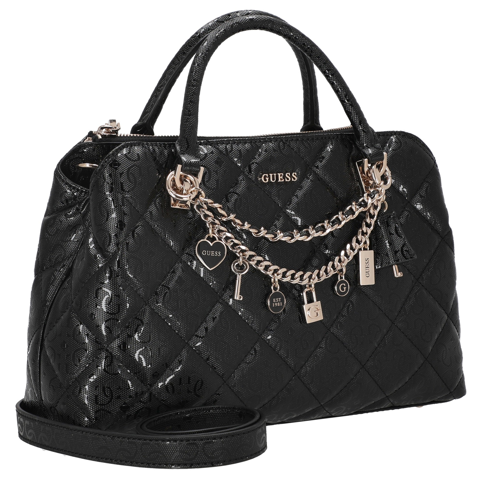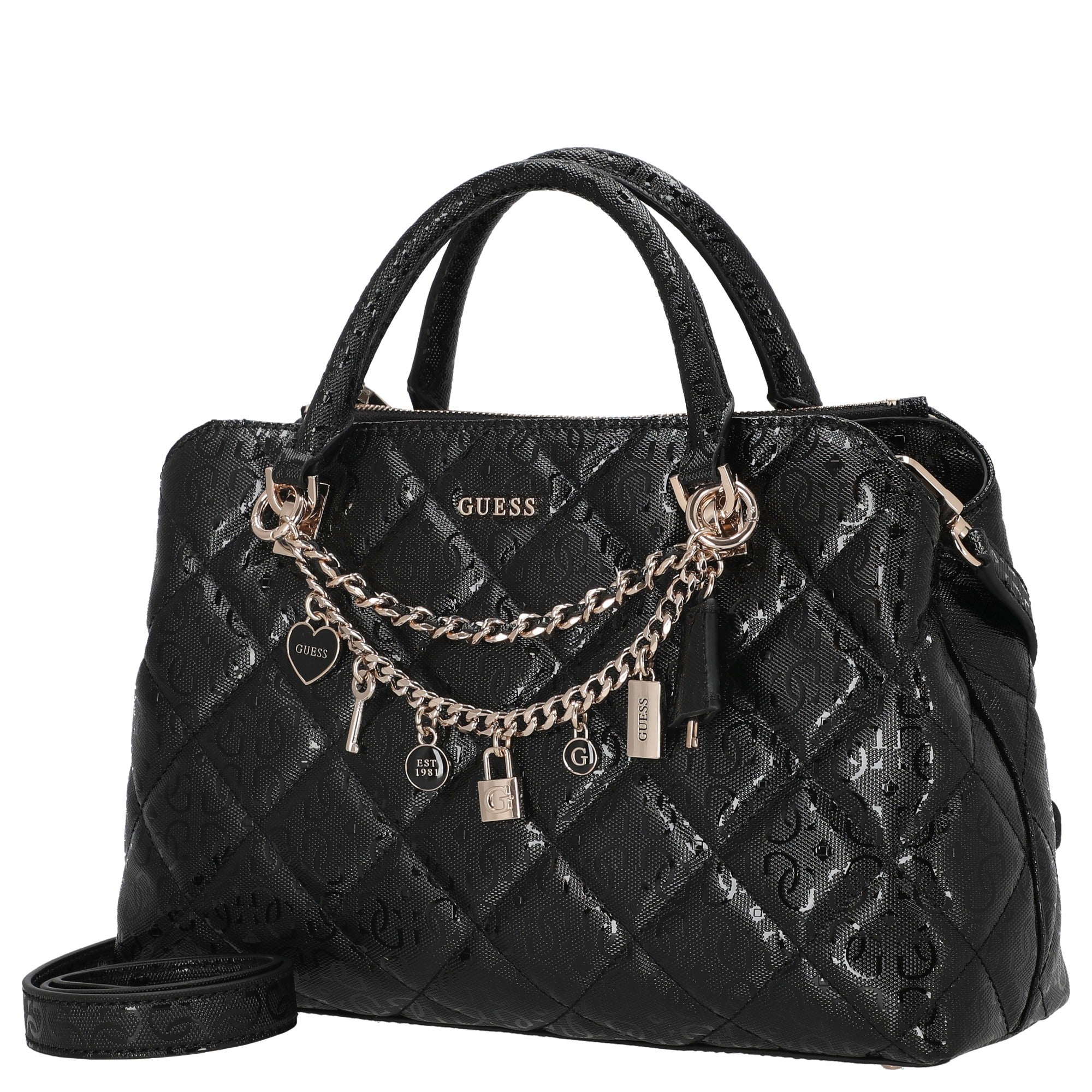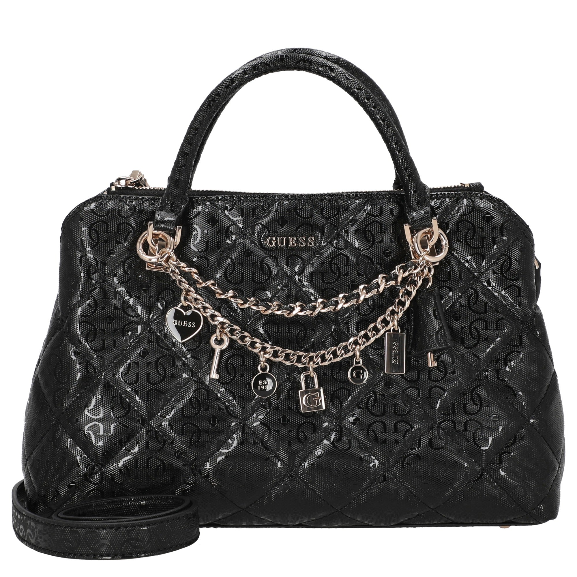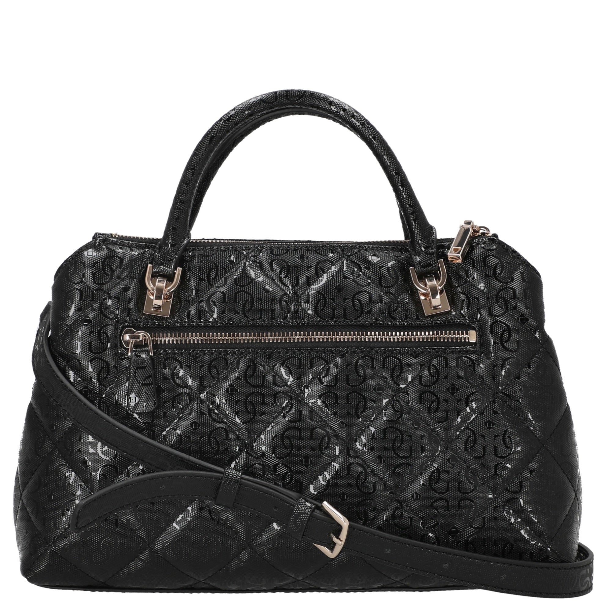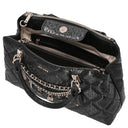 El GUESS Libby 2 Comp Satchel en negro es un bolso de mano elegante que combina estilo moderno con funcionalidad práctica. Está dirigido a mujeres que valoran un accesorio estiloso que funcione tanto en el día a día como en ocasiones especiales.