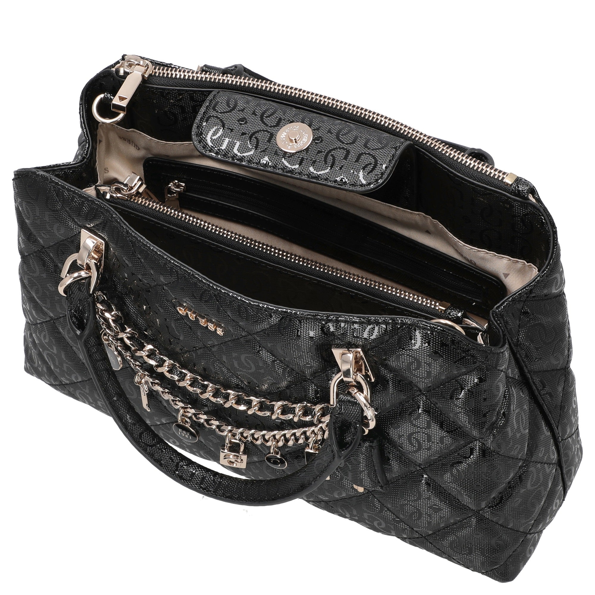 Guess Libby 2 Comp Satchel - Bolso de mano 30 cm (negro)