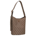 El bolso de hombro GUESS Meridian II en el elegante color Latte Logo es un acompañante estiloso para mujeres que valoran el diseño y la funcionalidad.