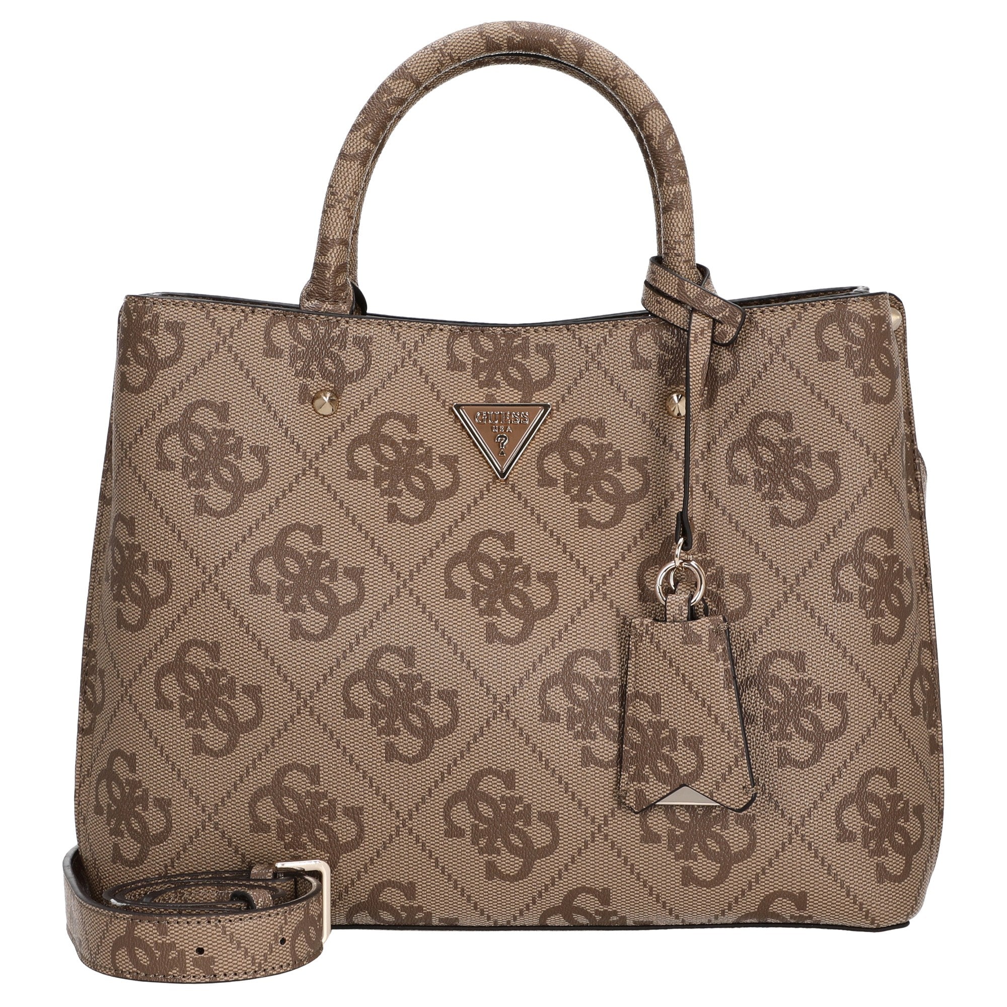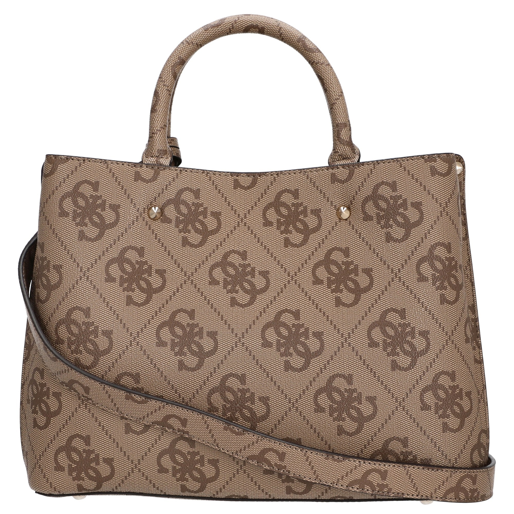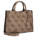 Die Guess Meridian II Henkeltasche in der eleganten Farbe Latte Logo vereint modisches Design mit praktischer Alltagstauglichkeit.
