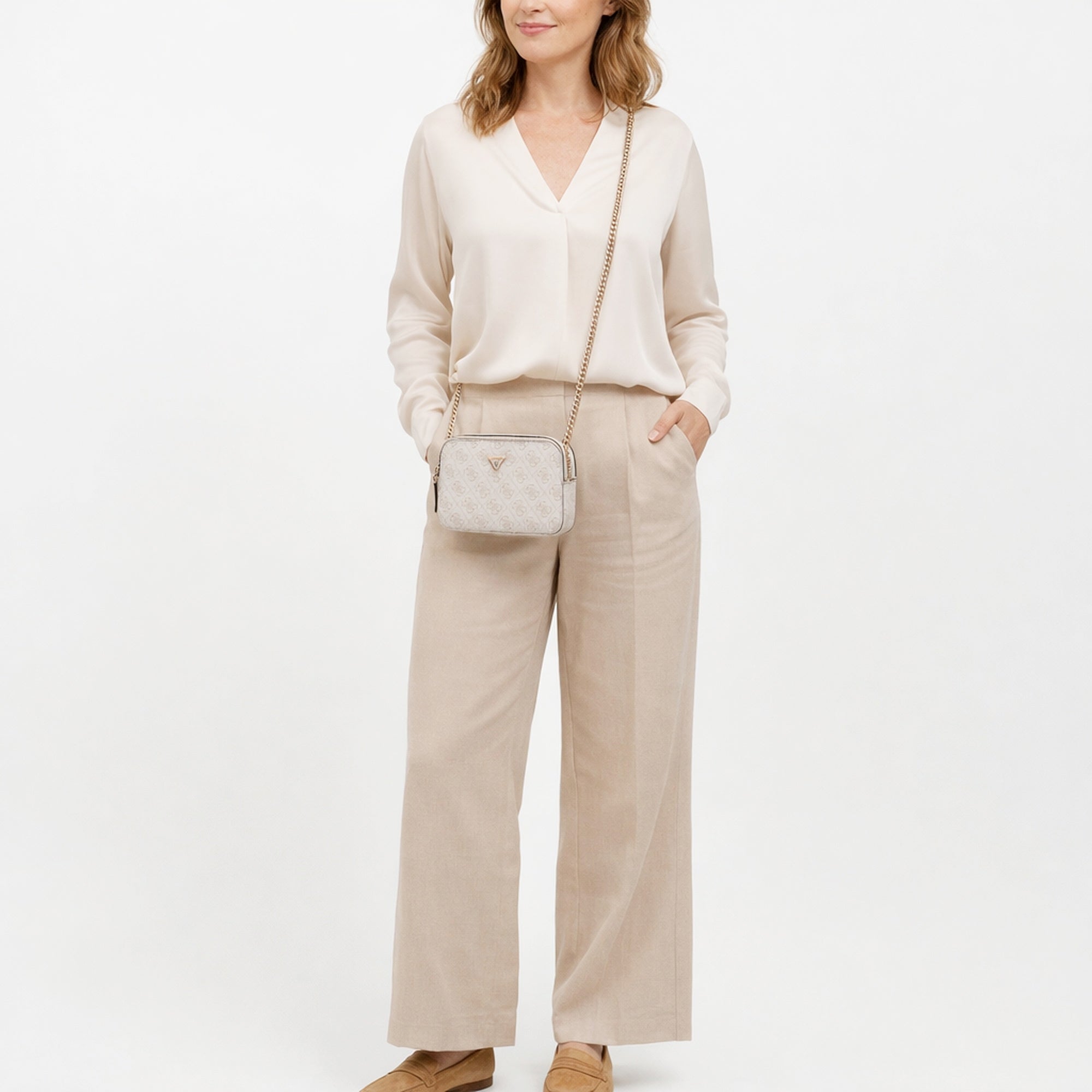 Ya sea en la oficina, de compras por la ciudad o en una reunión con amigos, el GUESS Noelle II Crossbody en taupe oscuro complementa cualquier conjunto con un toque de elegancia y aporta un estilo sin esfuerzo.
