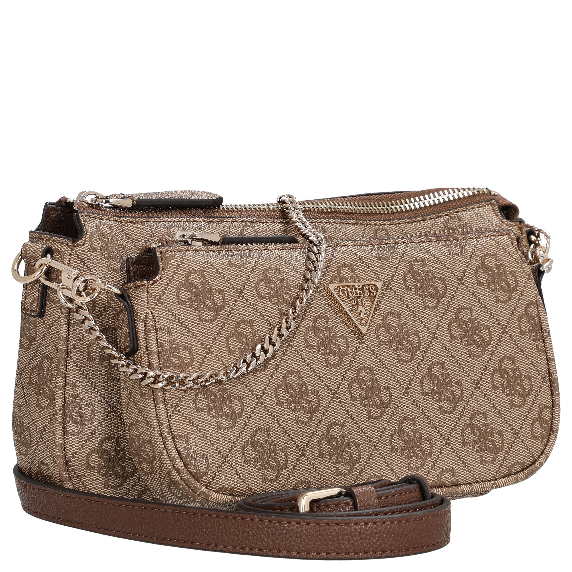 El Bolso bandolera GUESS Noelle II Double Pouch en logo latte/marrón combina elegancia de moda con versatilidad práctica. Este dúo de dos bolsos con estilo te acompaña con encanto en el día a día y garantiza un look expresivo, ya sea solo o combinado.