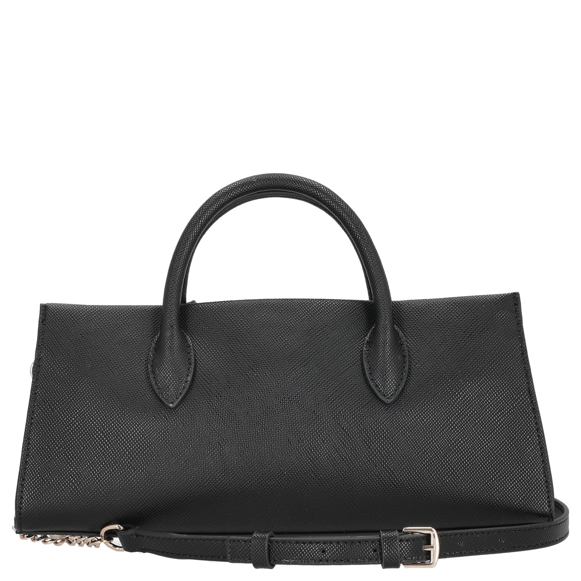 El bolso de mano Guess Noelle II en elegante negro es un accesorio de moda que acompaña a mujeres con estilo tanto en el día a día como en ocasiones especiales.