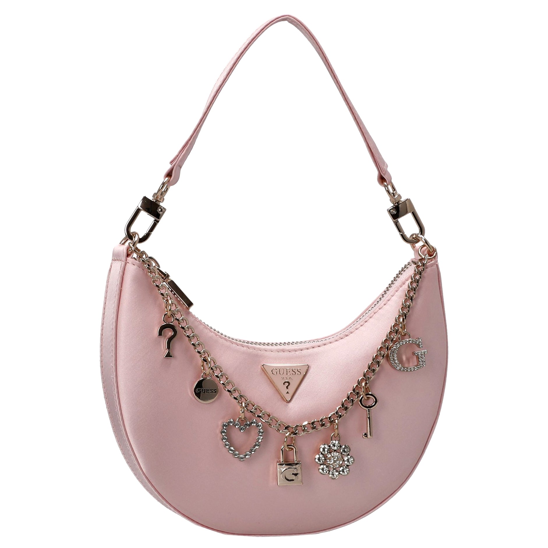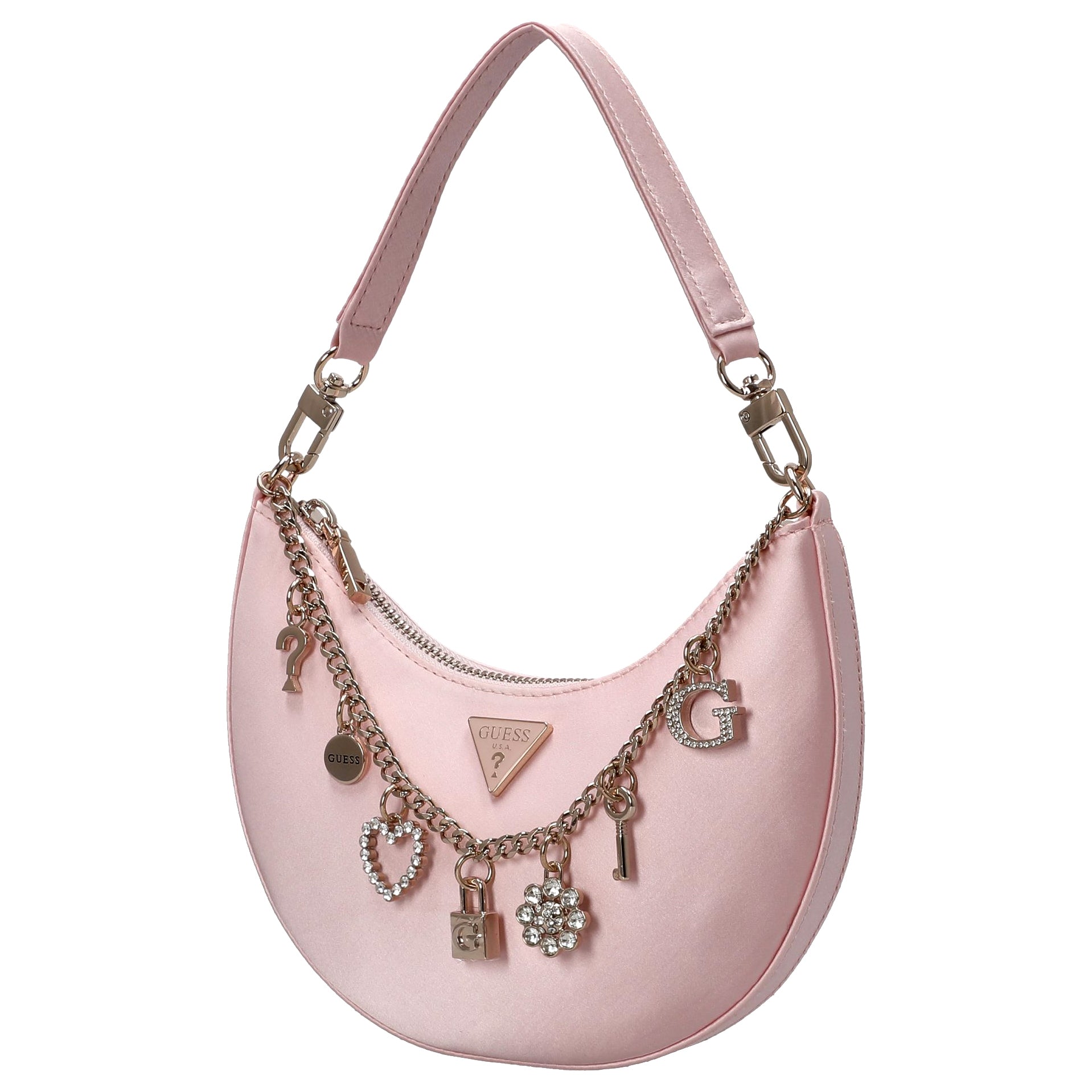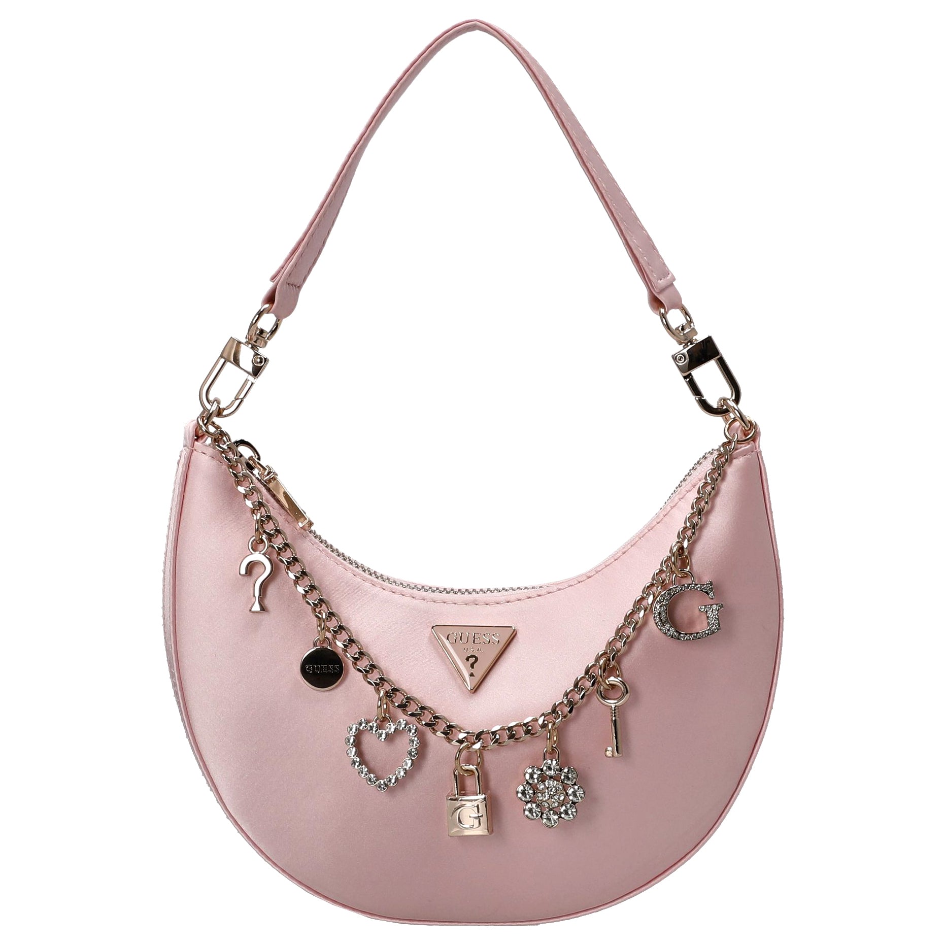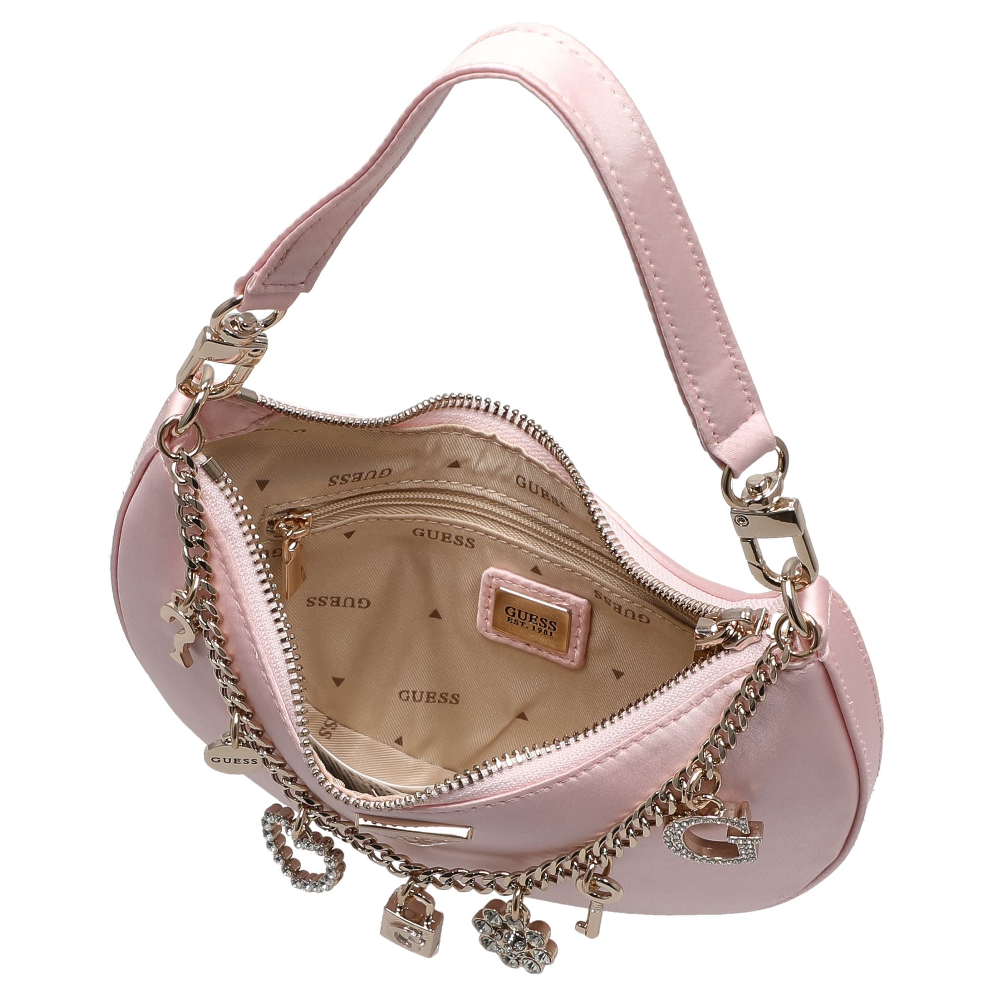 Un acompañante elegante para mujeres conscientes de la moda que valoran los detalles estilizados y la practicidad. El bolso de hombro Guess Tasmin Mini en light rose destaca por su diseño femenino y su forma compacta.