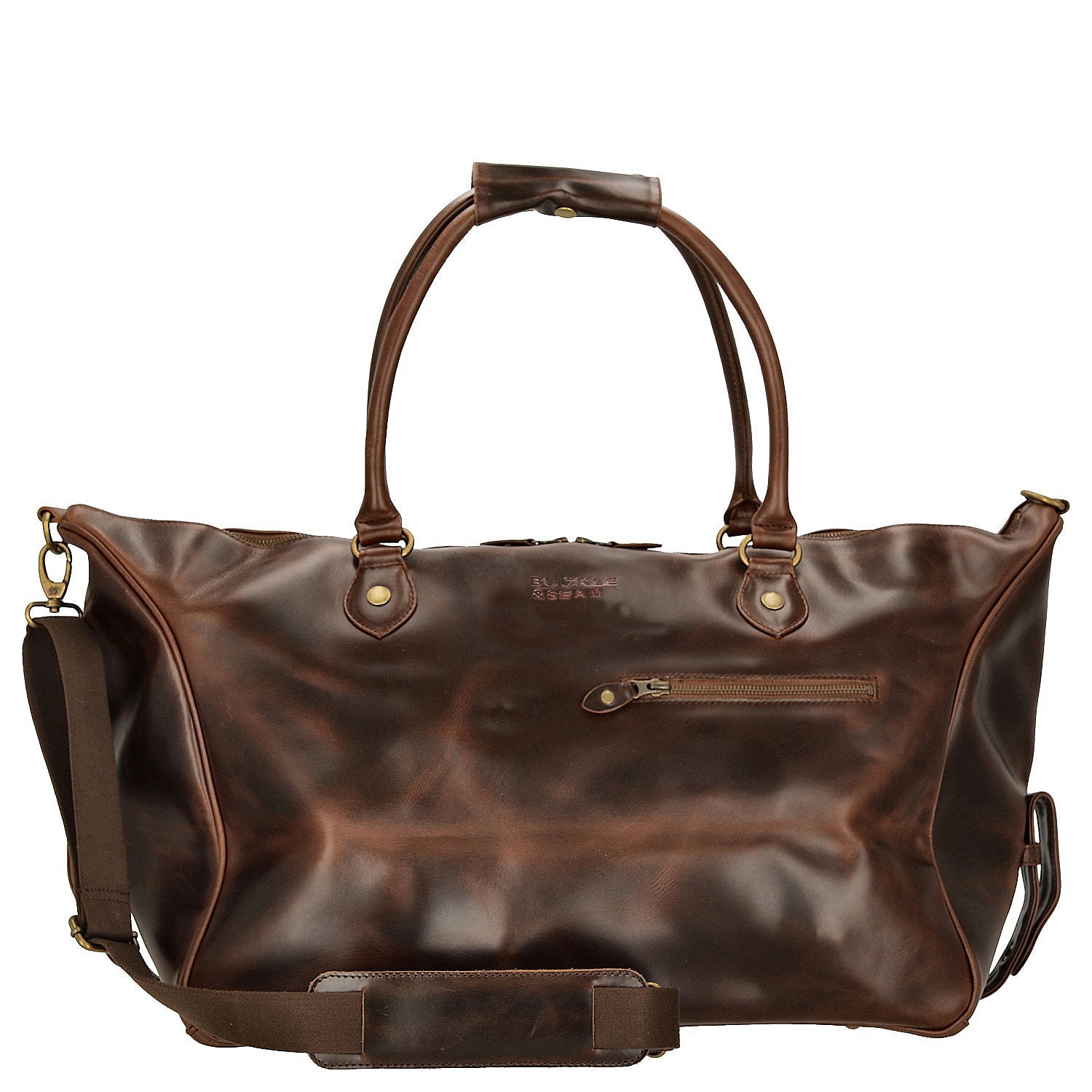 Disfrute de la combinación de estética y funciones prácticas con el Buckle & Seam Linwood Weekender en marrón/azul – la elección perfecta para cualquier viaje.