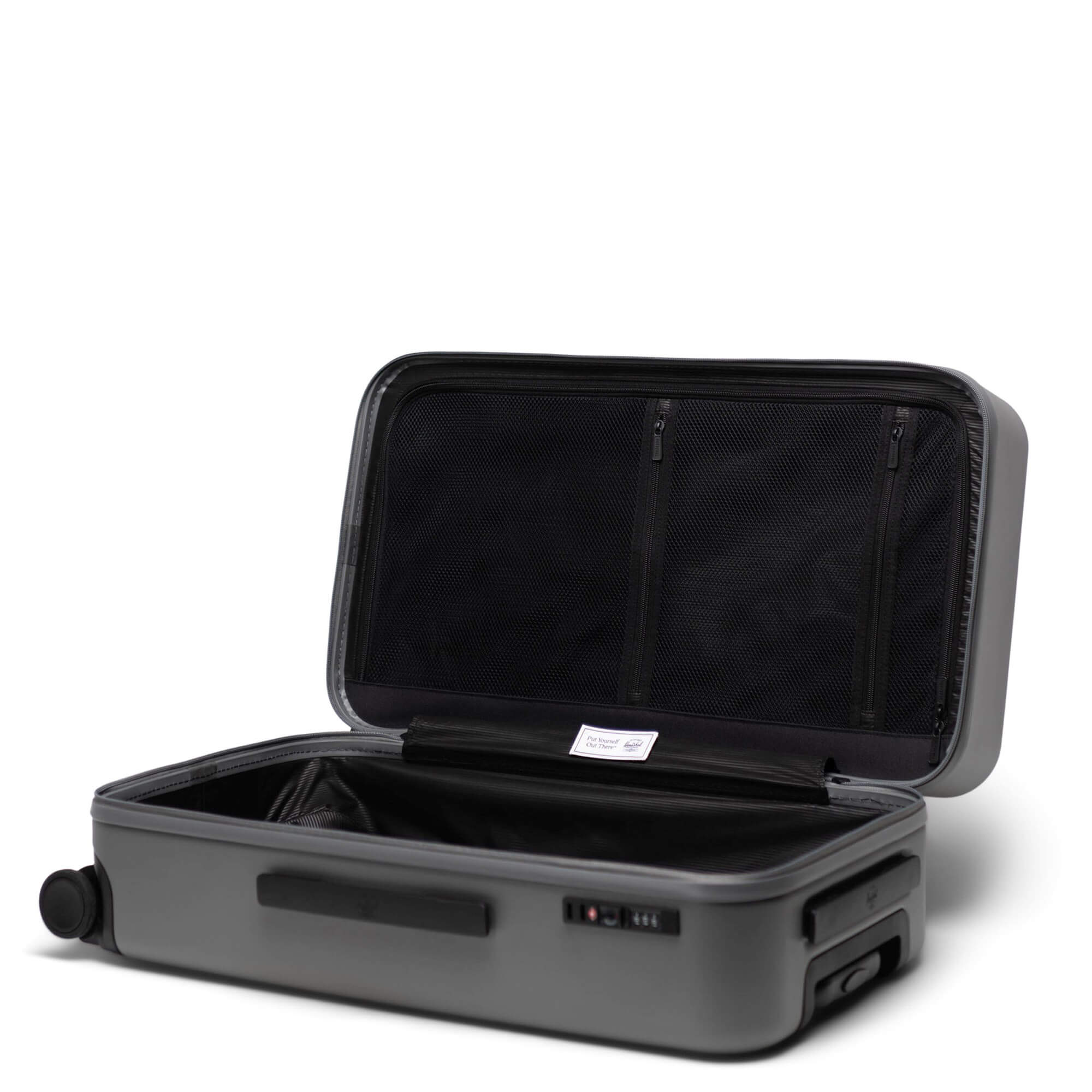 La pieza de equipaje está hecha de 100 % policarbonato de alta calidad y utiliza el innovador material EcoSystem™, que está fabricado en un 70 % con material reciclado de barreras de carretera. Al colaborar con el Global Recycled Standard, Herschel minimiza la huella de carbono y garantiza una cadena de suministro transparente.